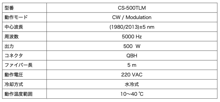 中国・Wuhan CS Tec Co., Ltd社製500 Wツリウム(Tm)ファイバーレーザー取り扱い開始のお知らせ