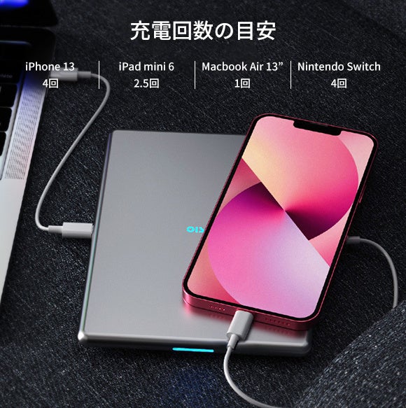 3.16900mAh大容量。iPhone 13を約4回充電可能!航空機内に持ち込むこともできます。