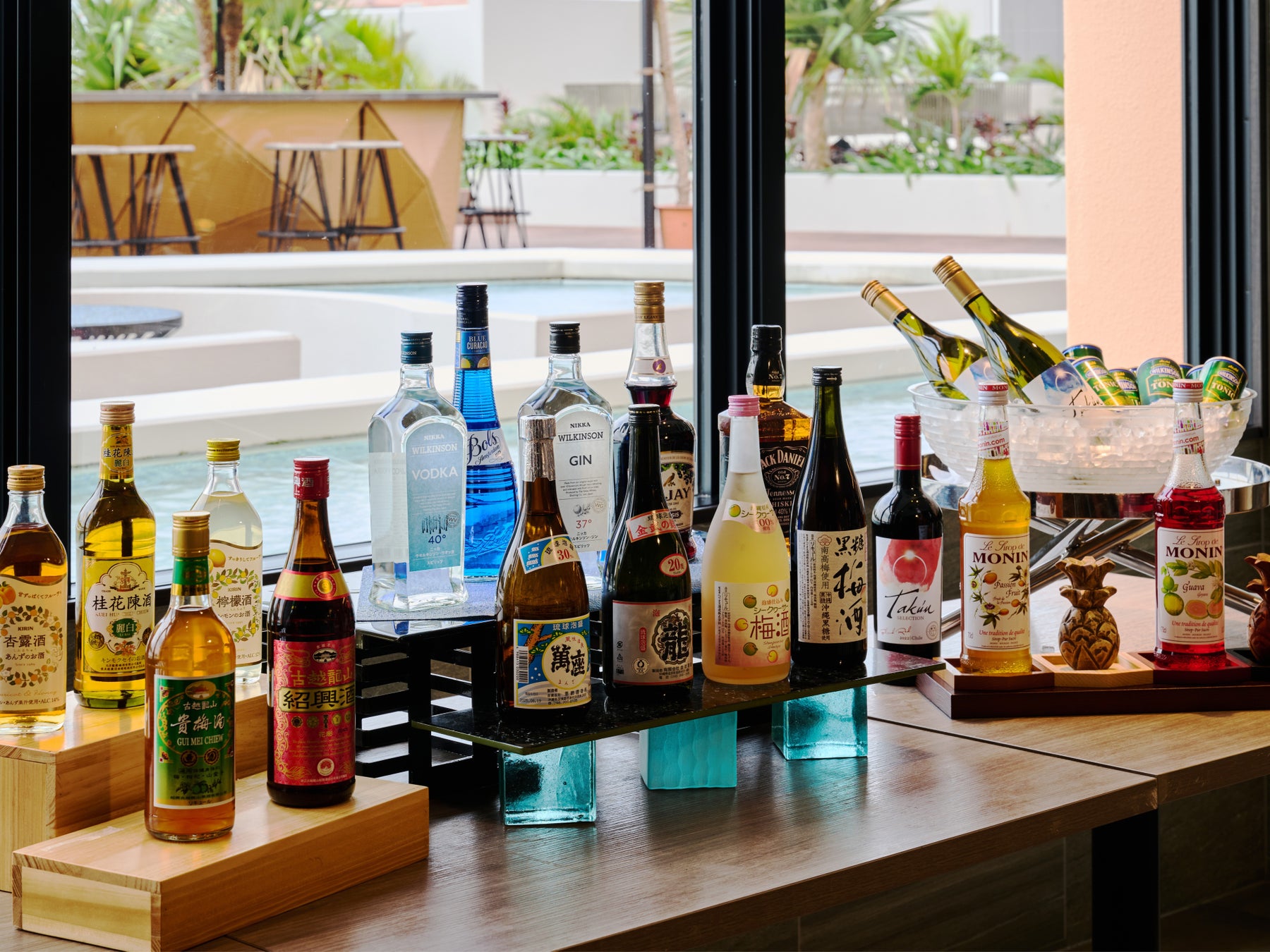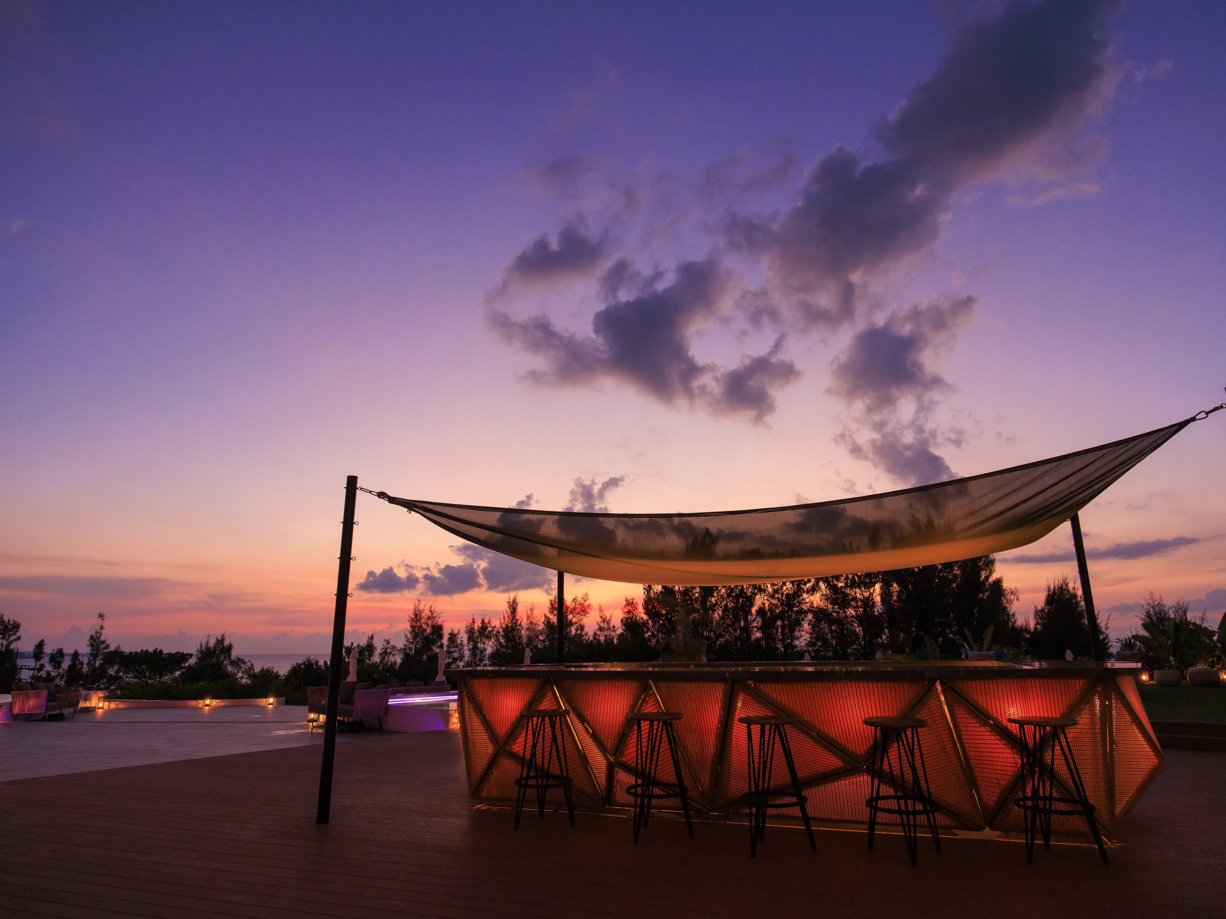 日が傾き、柔らかな陽光がアクアテラスのプールに差し込む頃、水面には幻想的なサンセットの景色が広がります。プールサイドバーでは、紹興酒・泡盛・ワイン・カクテルなどの厳選したアルコールを含むドリンクをフリースタイルでご用意しております。サンセットに合わせて毎日開催する音楽ライブが、刻々と移ろう空の色と共鳴し、この時間だけの特別な夕景を鮮やかに彩ります。サックスやトランペットの音色が海風に溶け込み、リゾートならではの心地よい夕暮れを演出します。ドリンク片手に、贅沢なサンセットのひとときをお過ごしください。サンセットライブは毎日開催し、その日の空模様や雰囲気に合わせた演出により、訪れるたびに異なる表情の夕景と音楽をお愉しみいただけます。