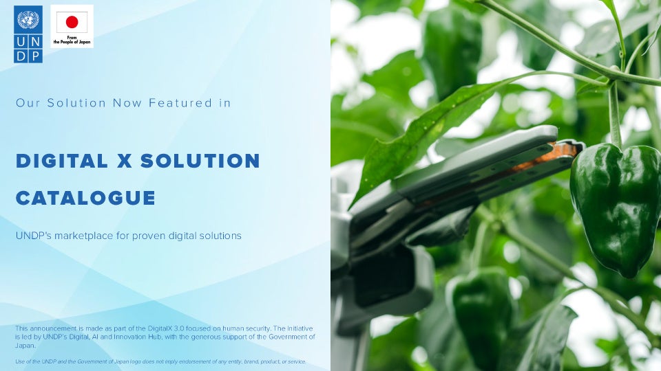 テクノロジーで農業課題を解決するスタートアップ、AGRIST株式会社(本社:宮崎県新富町、以下AGRIST)のAI搭載自動収穫ロボットが、国連開発計画(UNDP)の「DigitalX カタログ」に公式掲載されました。本カタログ※は、日本政府の支援による「DigitalX3.0」プログラムのもと、SDGs(持続可能な開発目標)の達成や「人間の安全保障」の強化に貢献する、再現性の高いデジタルソリューションを厳選して紹介するグローバル・プラットフォームです。