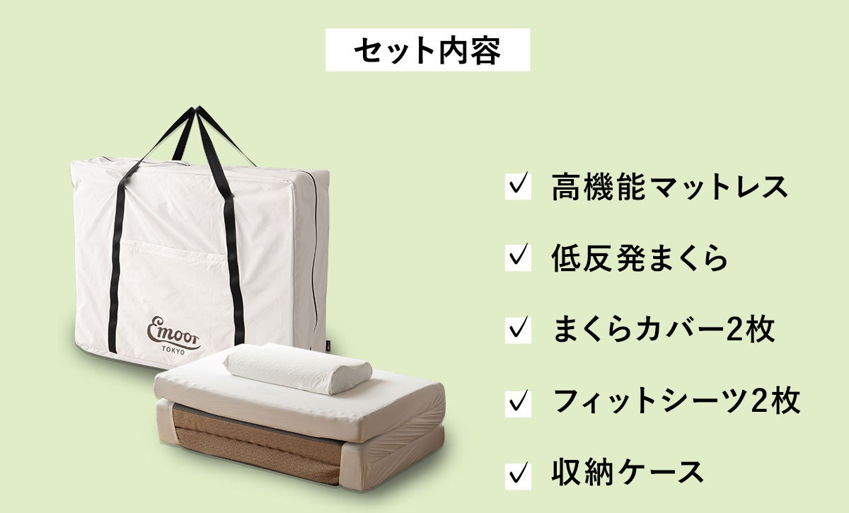 “寝る・座る・たたむ”に高い専門性を持つ健康家具ブランドEMOOR(エムール)から、ミニマルに快眠空間を整える『収納ケース付き NESTLEAP 寝具6点セット』が新登場。