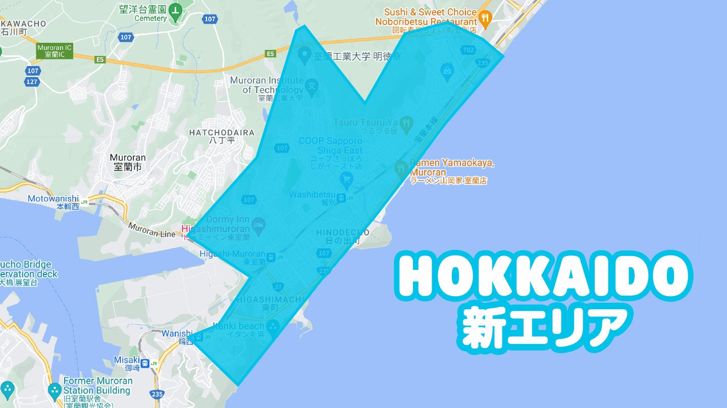 配達エリア:北海道室蘭市・登別市の一部(以下の地図をご参照ください)