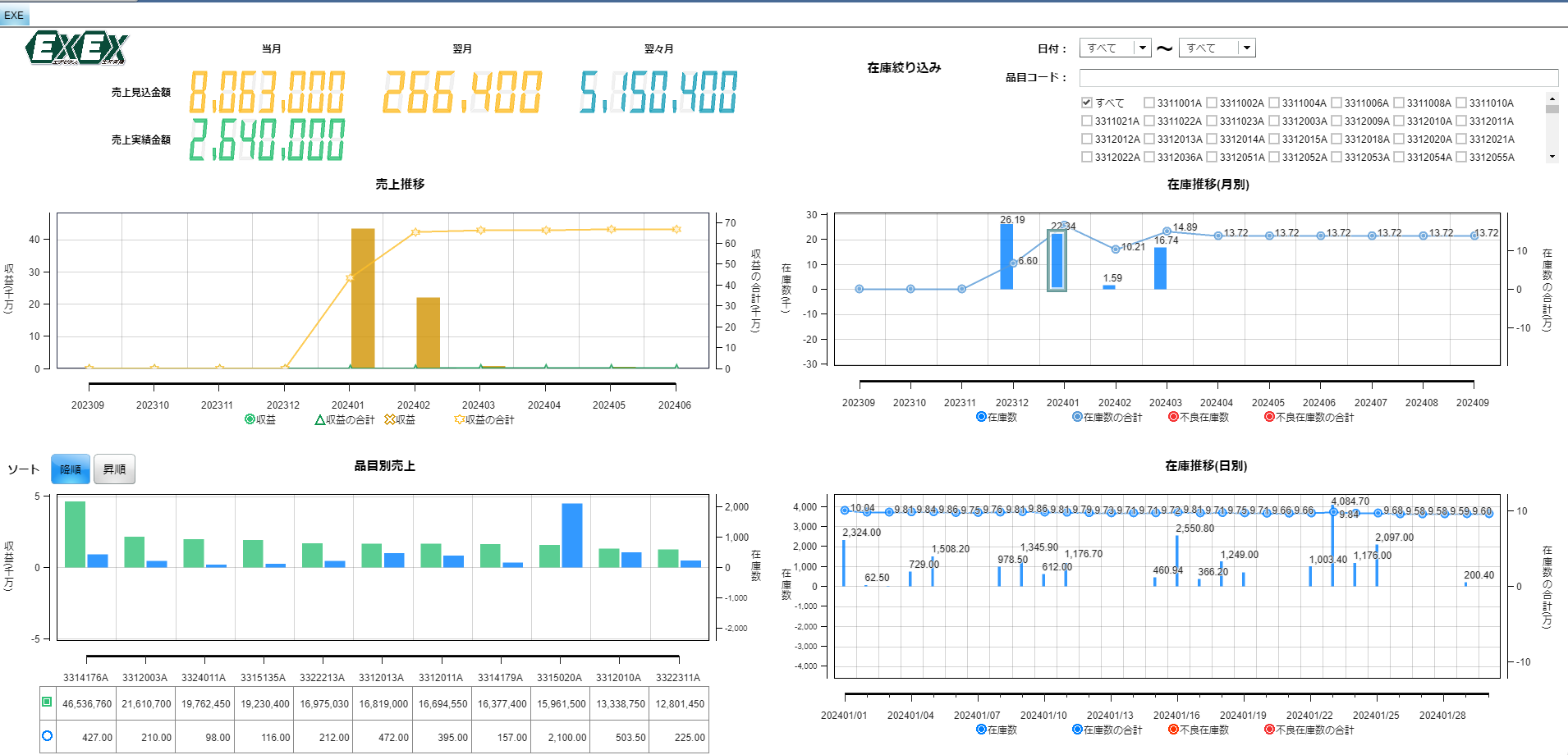 新モデルでは、ノンプログラミングでユーザー自身による帳票フォームの編集が可能になるほか、EXEX生産管理内の業務データをリアルタイムに可視化し、データ分析やレポート出力が可能となるダッシュボード機能が追加されます。