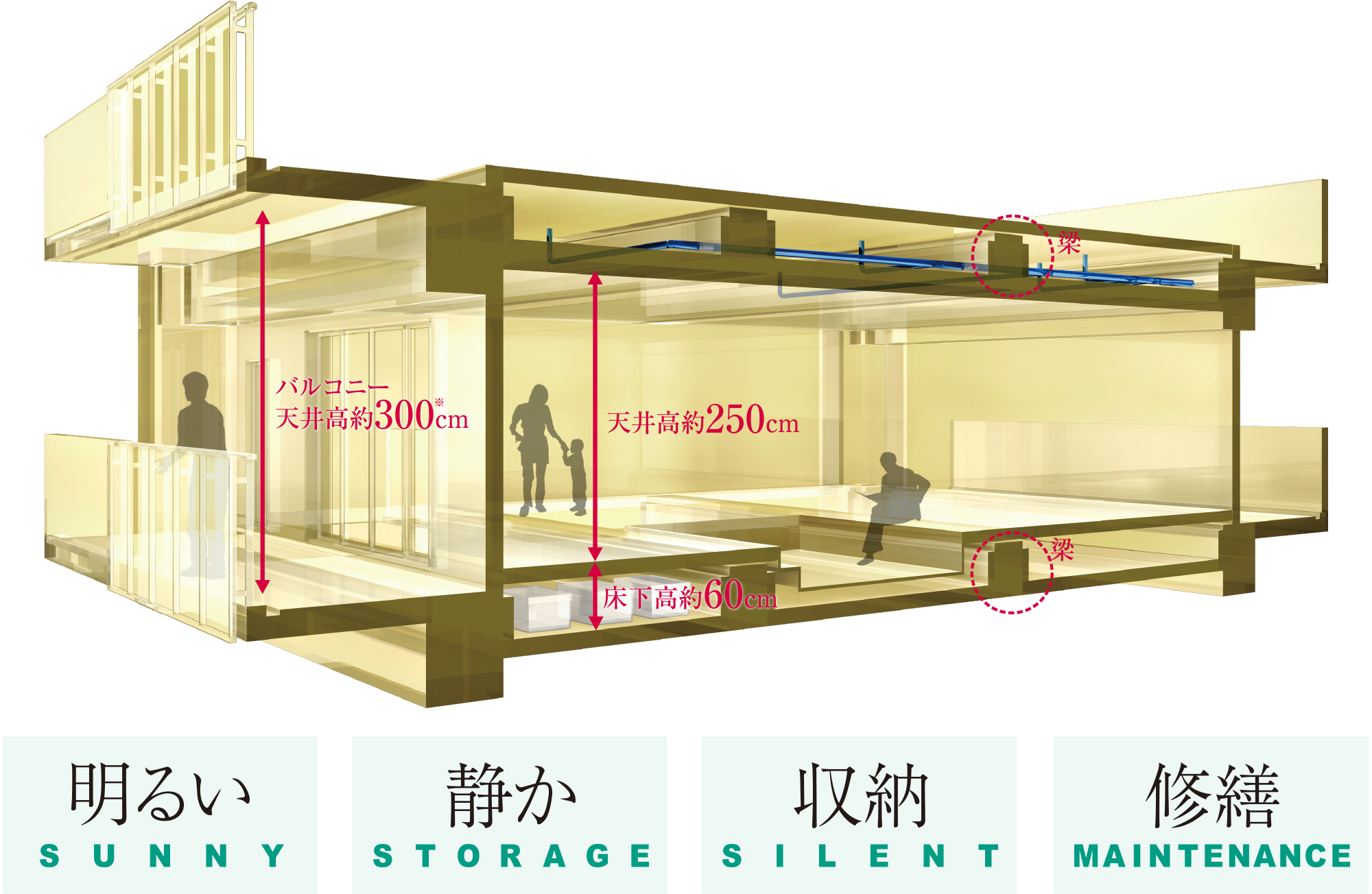 スケルトン&インフィルの利点を発展させ、永く快適に暮らせる住まいを目指す新発想「ルネス工法」を採用。