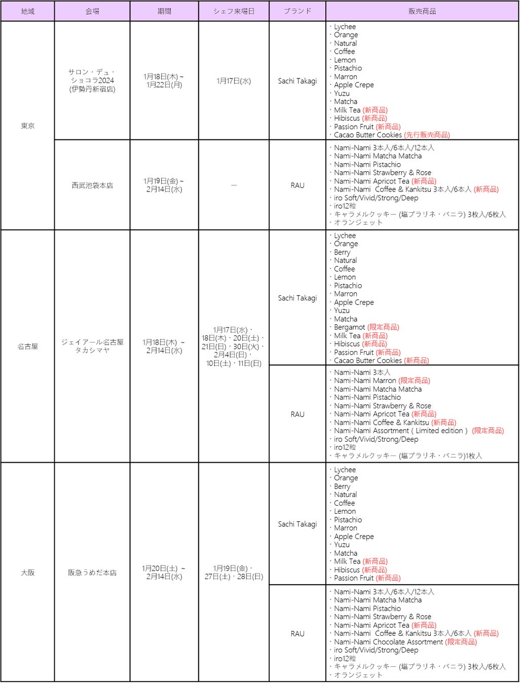 ◆ジェイアール名古屋タカシマヤ:1月18日(木) ~2月14日(水) ブランド:RAU/Sachi Takagi