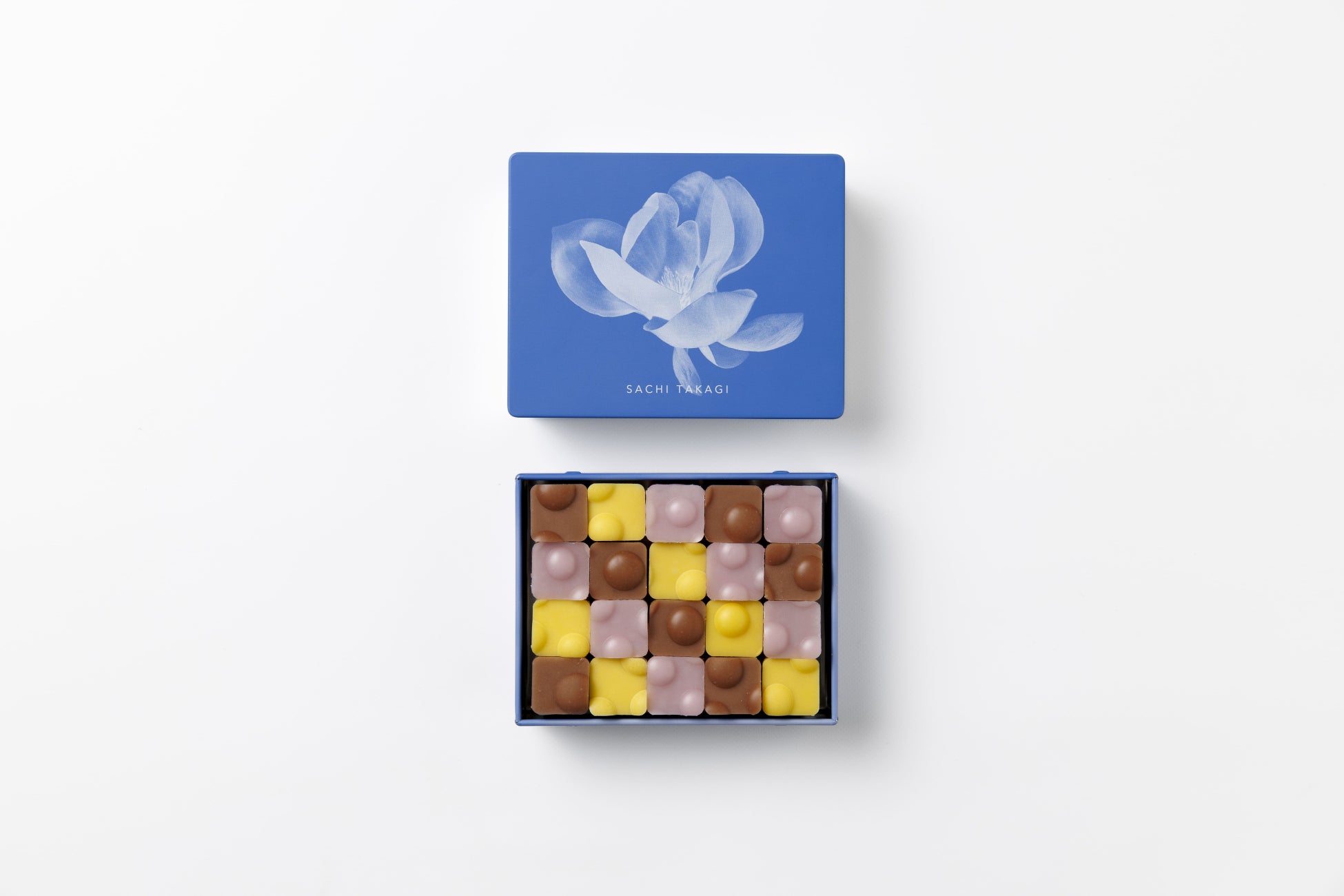 独創性あふれるアートのような華やかなチョコレートはプラントベース(植物性)の材料で作られる瑞々しい生チョコレート。植物を包み込む自然界をイメージした色鮮やかな見た目と、カカオ豆から作り上げるコスタリカ産のビーントゥバーチョコレートを使用した植物の力強さや、素材の風味をダイレクトに感じられる味わいが特徴です。