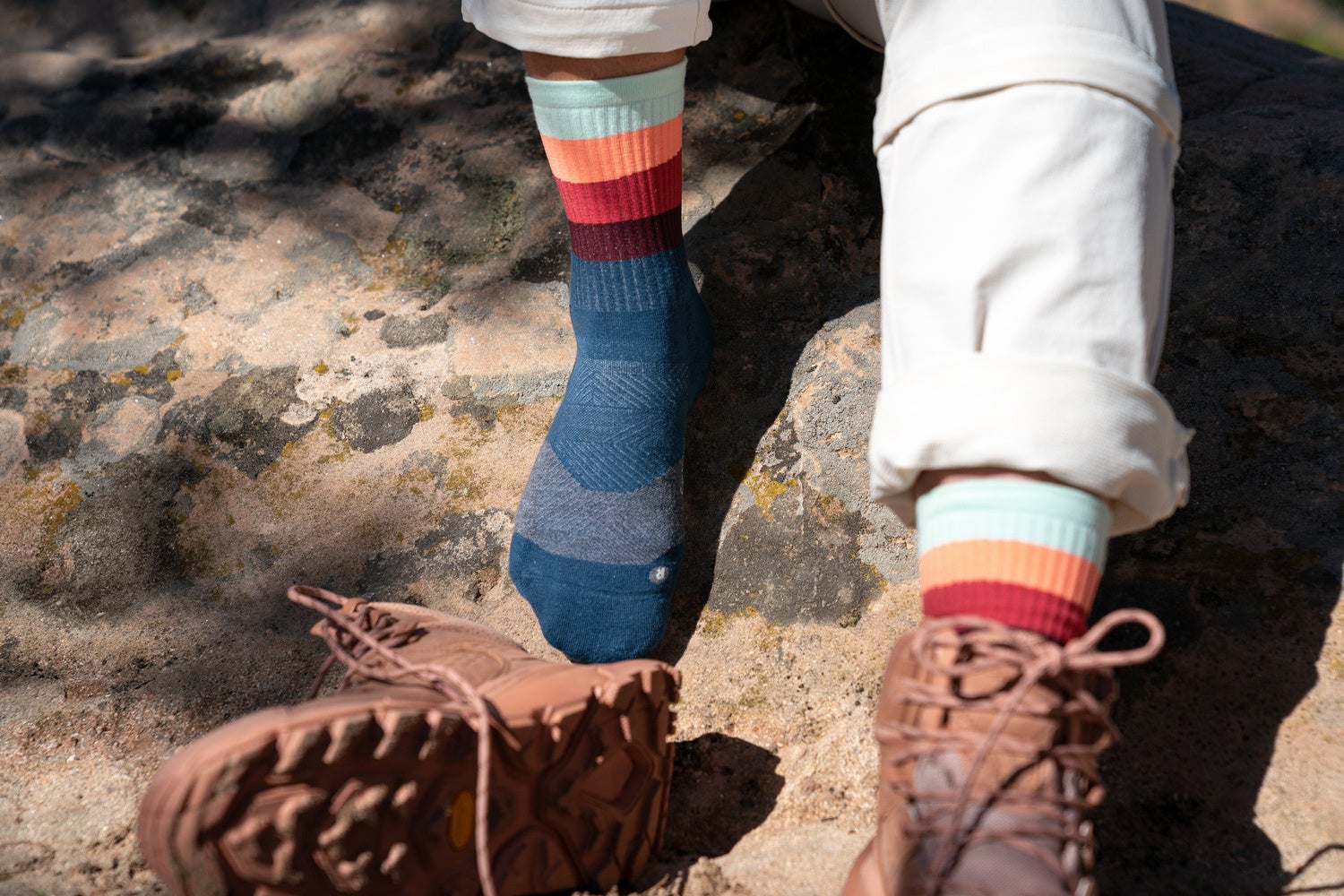 全米スポーツソックスのトップブランド・Feetures®︎(フィーチャーズ)から新作が登場。左右異なる身体構造に沿った作り、手作業で仕上げるつま先のシームレス仕様、特許取得のデザインと編み方「Targeted Compression」のピンポイント圧着で足裏のアーチをしっかりとサポート。険しい山道や岩場などの過酷な状況でも、足元をしっかりと守ってくれる高密度クッションが特徴のTRAILシリーズ。リサイクル由来の繊維が優れた速乾性を実現します。数十年に渡って培ったランソックスの知識を軸に、足の動きや作用の概念を刷新。アクティビティやライフスタイルにフィットする優れたデザインと高い耐久性が、最高のパフォーマンスとナチュラルな走りを提供。
