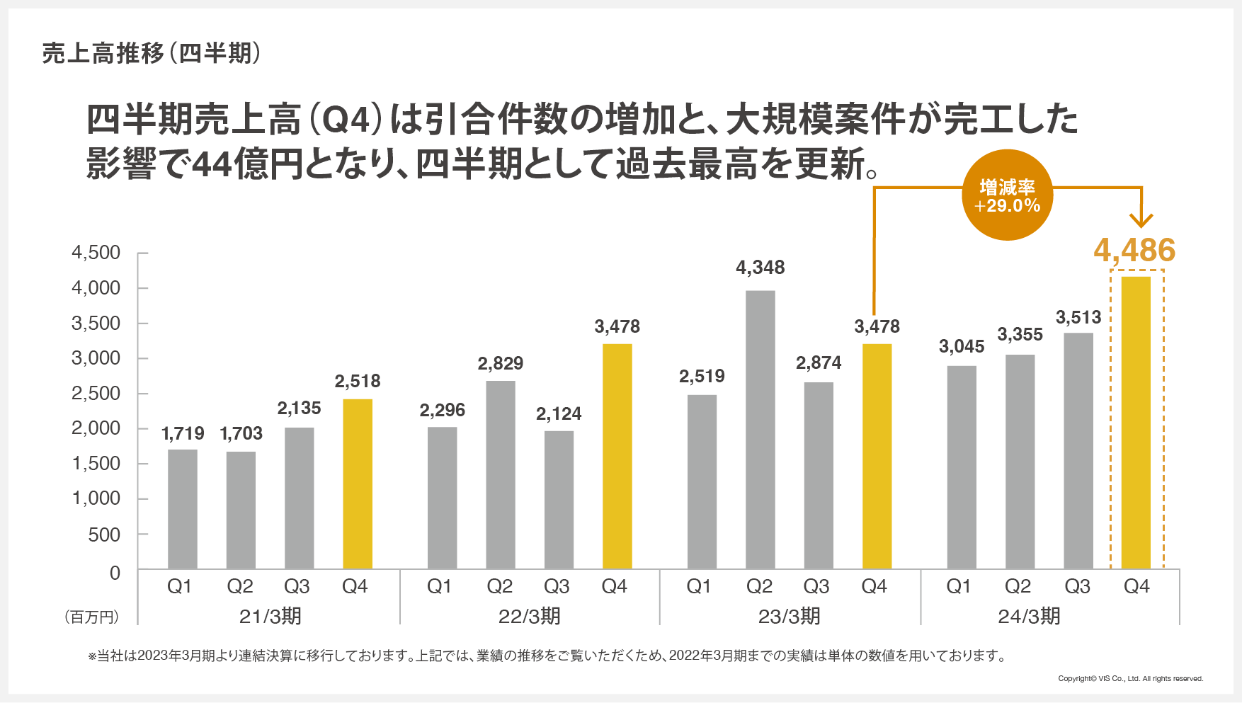 第4四半期は、プロジェクトの引き合い件数と、受注率の向上が売上高に寄与しました。