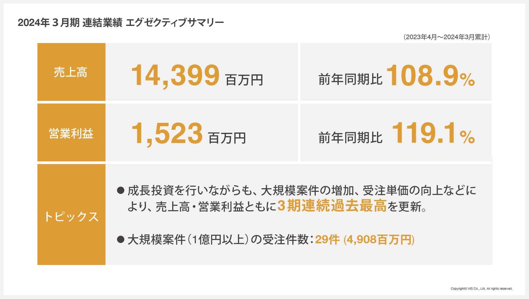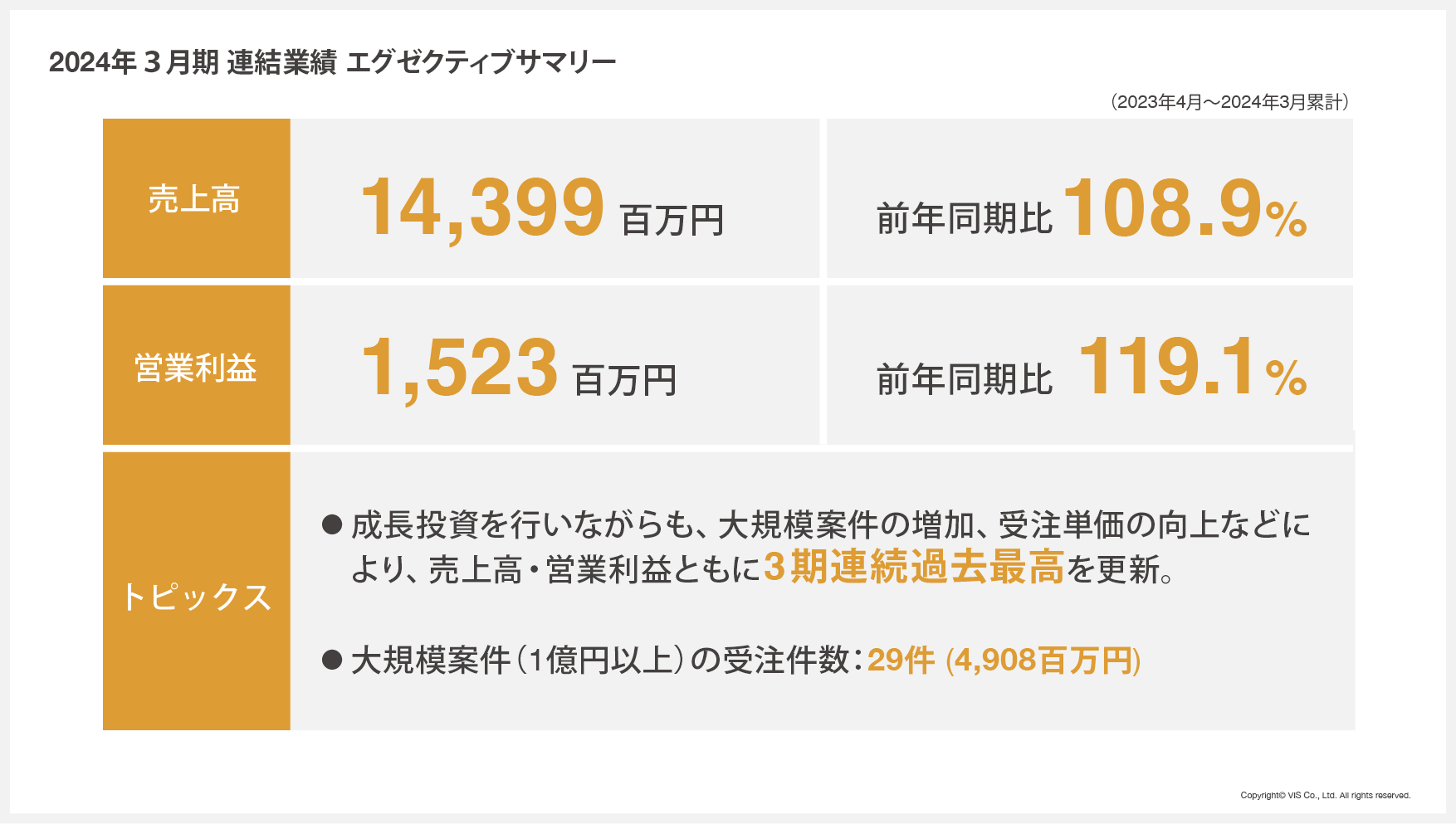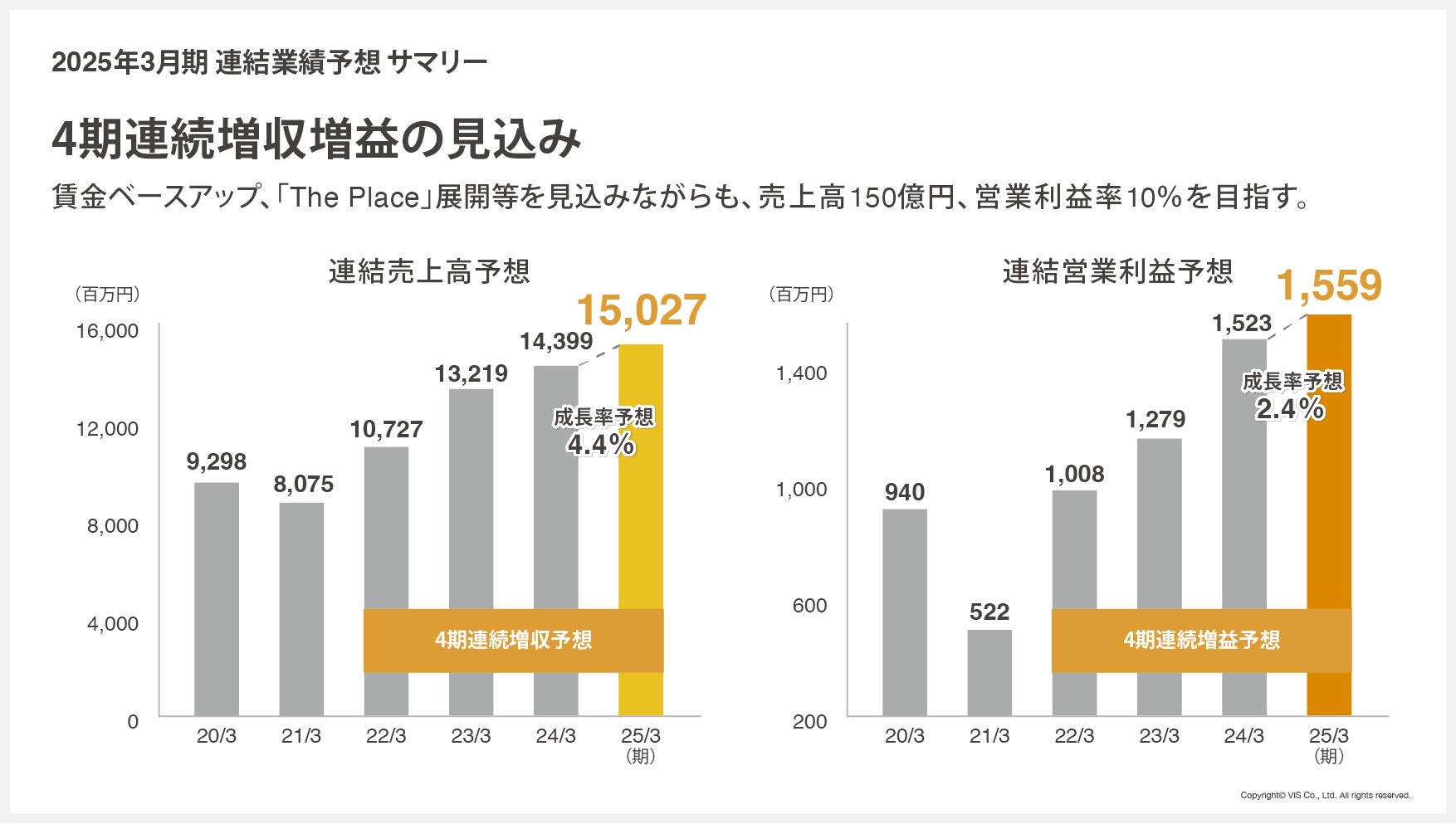 <ヴィス>過去最高の売上高と営業利益を更新し、3期連続増収増益。(2024年3月期決算と中期経営計画進捗を発表)