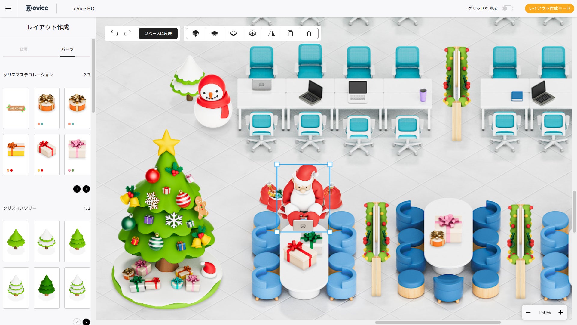 クリスマス期間限定!マウス操作だけでバーチャルオフィスを飾り付けできるレイアウト作成機能を公開