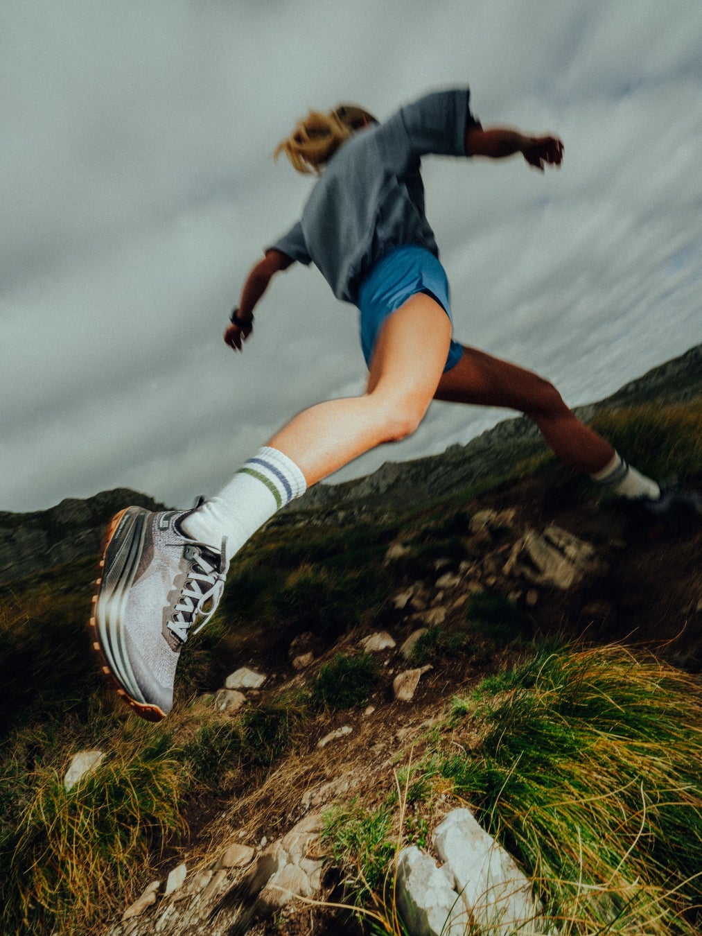 ・プレモールドTPUヒールカウンターとロックダウンニットフィット構造が足をしっかりとホールドし、トレイル上での素早い動きをサポートします