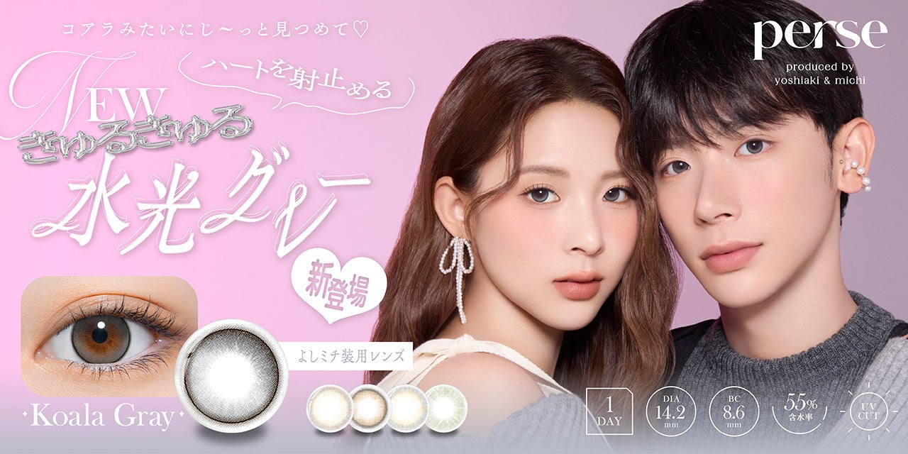 【本日発売開始】Z世代のファッションアイコン“よしミチ”姉弟プロデュースカラコンブランド 『perse(パース)』新色「Koala Gray」本日発売!ハートを射止める、きゅるきゅる水光グレーカラコン