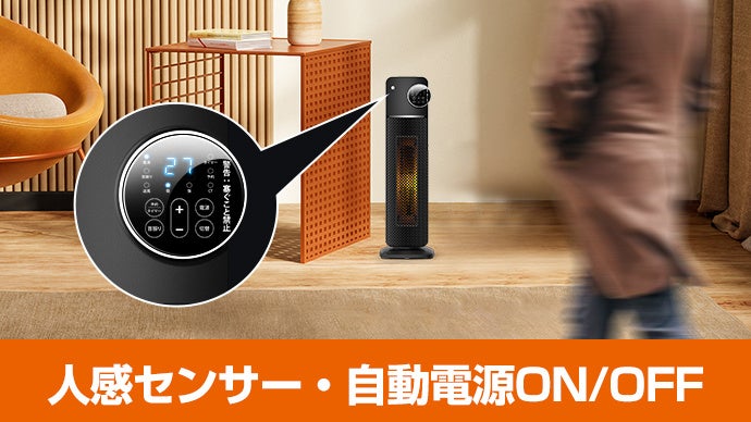 人の動きを感知して自動でON/OFFする人感センサーモードがあり、約2mの範囲(上下/左右90°)で人やペットの動きを感知し自動稼動され、約3分間以内に人やペットの存在を感知できない場合は自動的にOFFされます。