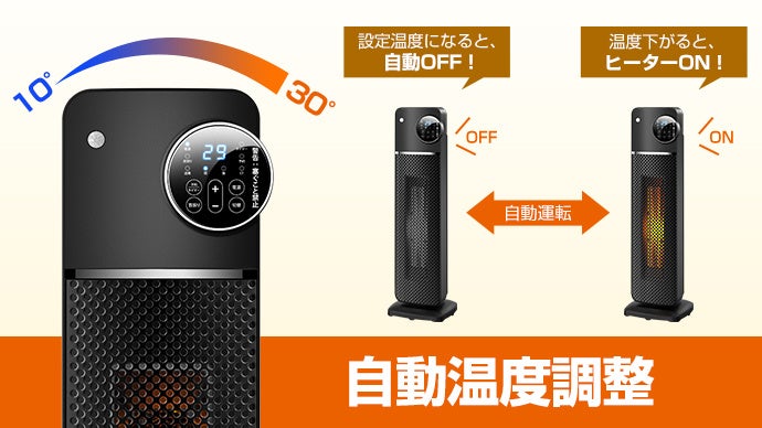 部屋の広さや天候に合わせて、ヒーターの温度を簡単に調整できます。