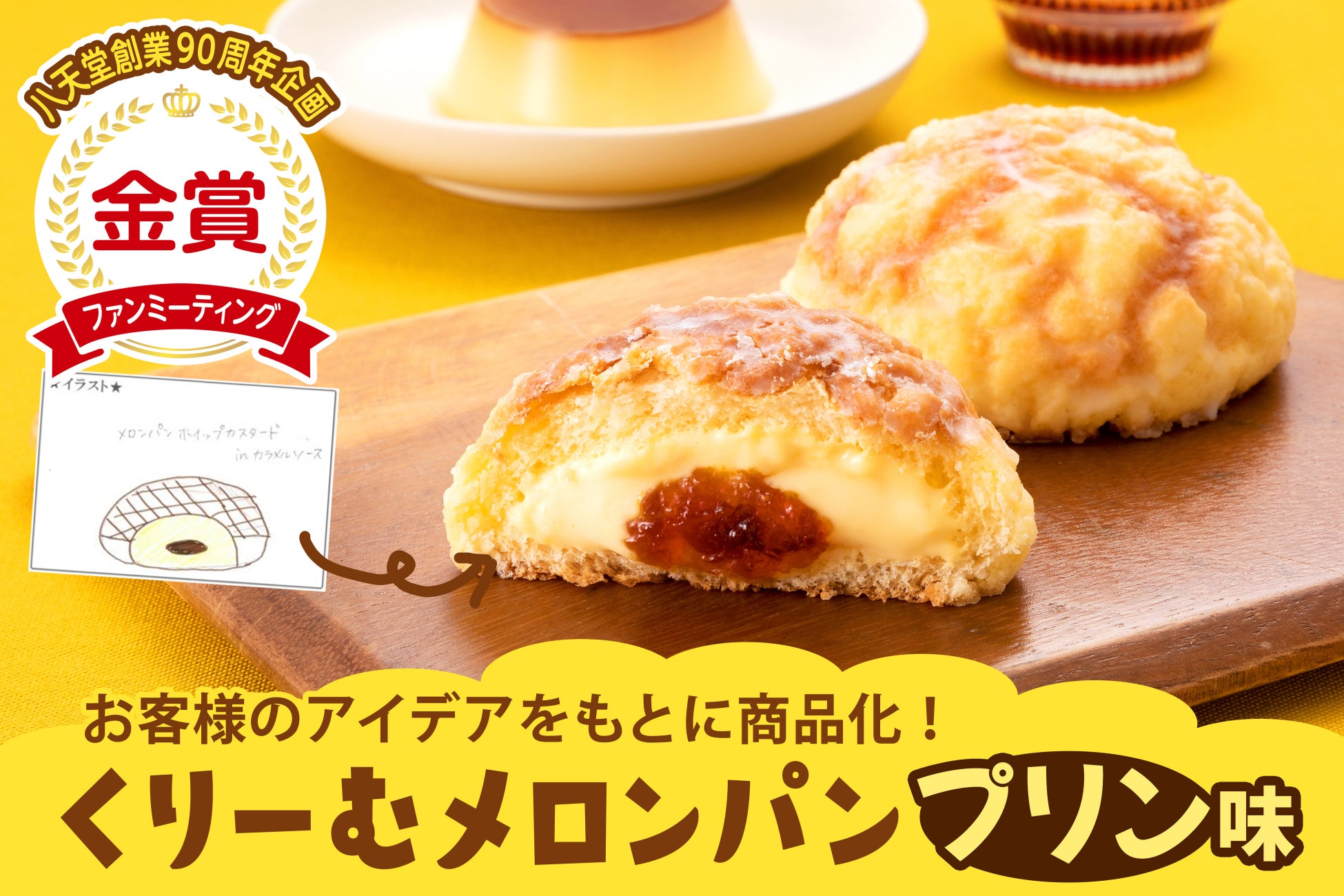 八天堂ファンミーティングから生まれたアイデアスイーツパンを商品化!「くりーむメロンパン プリン味」が八天堂オンラインショップに登場