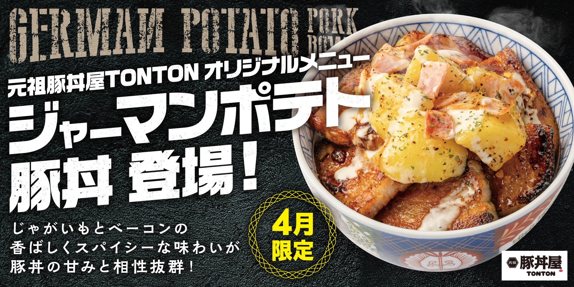 ワンズトライン株式会社(本社:大阪市北区芝田2丁目3番16号、代表取締役:山内仁)が運営する「元祖豚丼屋TONTON」では、24年4月より4月限定提供となる『ジャーマンポテト豚丼』の販売を開始いたします。