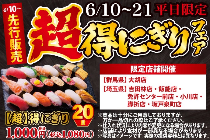 《限定店舗にて先行発売!》前回開催時大好評!6月10日(月)~平日限定!『【超】得にぎりフェア』開催!