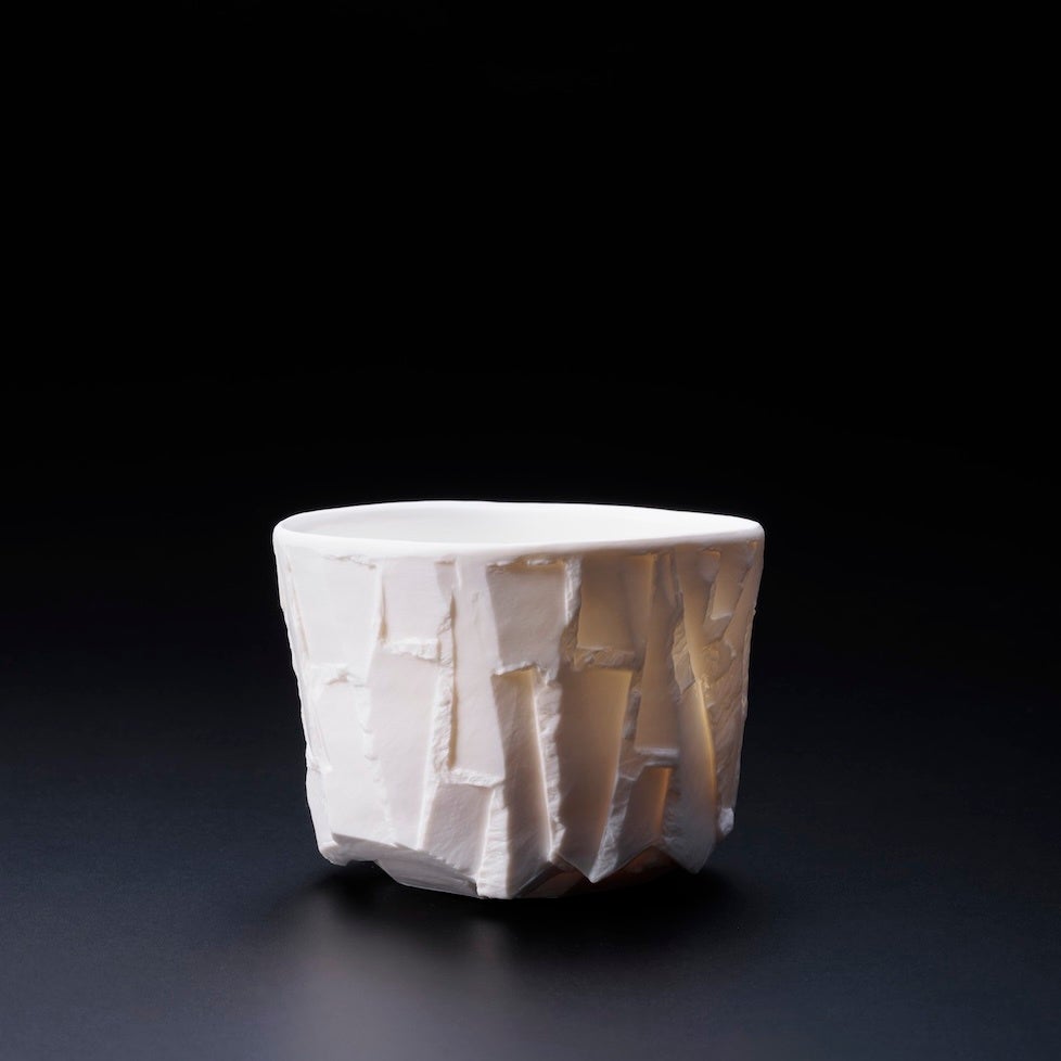 近年の展示会で特に注目を集めている「白備前」は、備前焼のイメージを鮮やかに裏切る、透き通るような白さが特徴。かつての白備前は、江戸時代の備前焼陶工と岡山藩が起死回生を図るために制作に取り組み、明治〜昭和を駆け抜けた細工物の名手、三村陶景が自身の作品で意欲的に用いてきた印象が強い。そういった先人たちが切り開いてきた”白”へ敬意とともに、現代の採掘技術でしか得られない陶石を用い、新たな形で蘇らせるべく制作している。