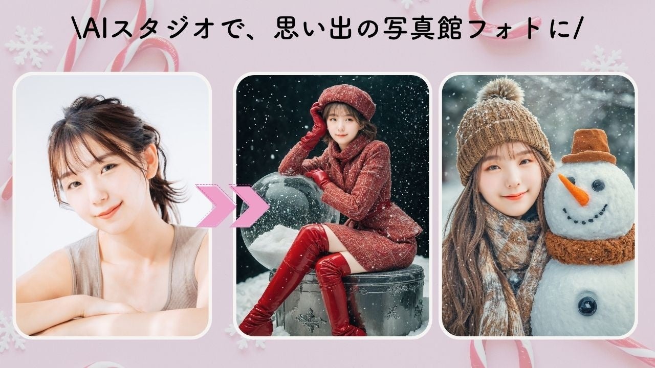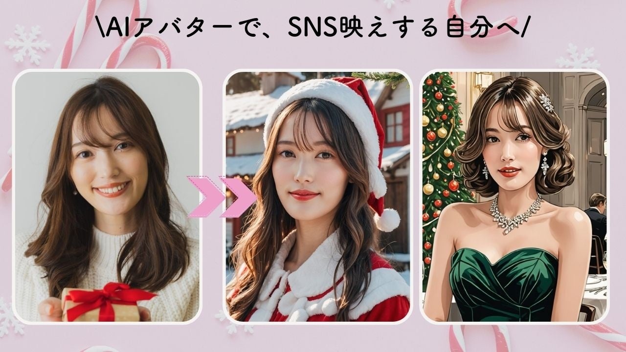 クリスマスに人気のキャラクターやクリスマス風のスタイルなど、個性的なAIアバターで、SNSでの自己表現を楽しもう。