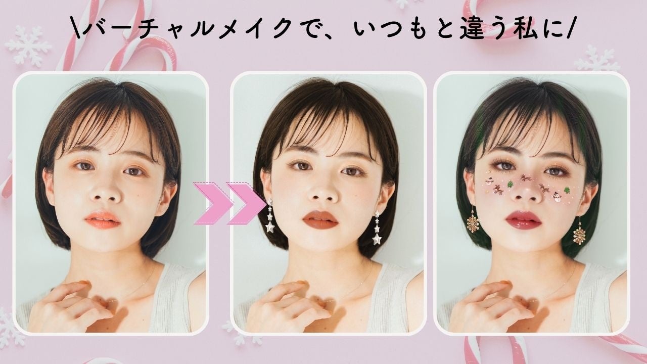 「トナカイメイク」や「クリスマスフェイスペイント」など、AIが提案するトレンドメイクフィルターで、特別な日に華を添えよう。