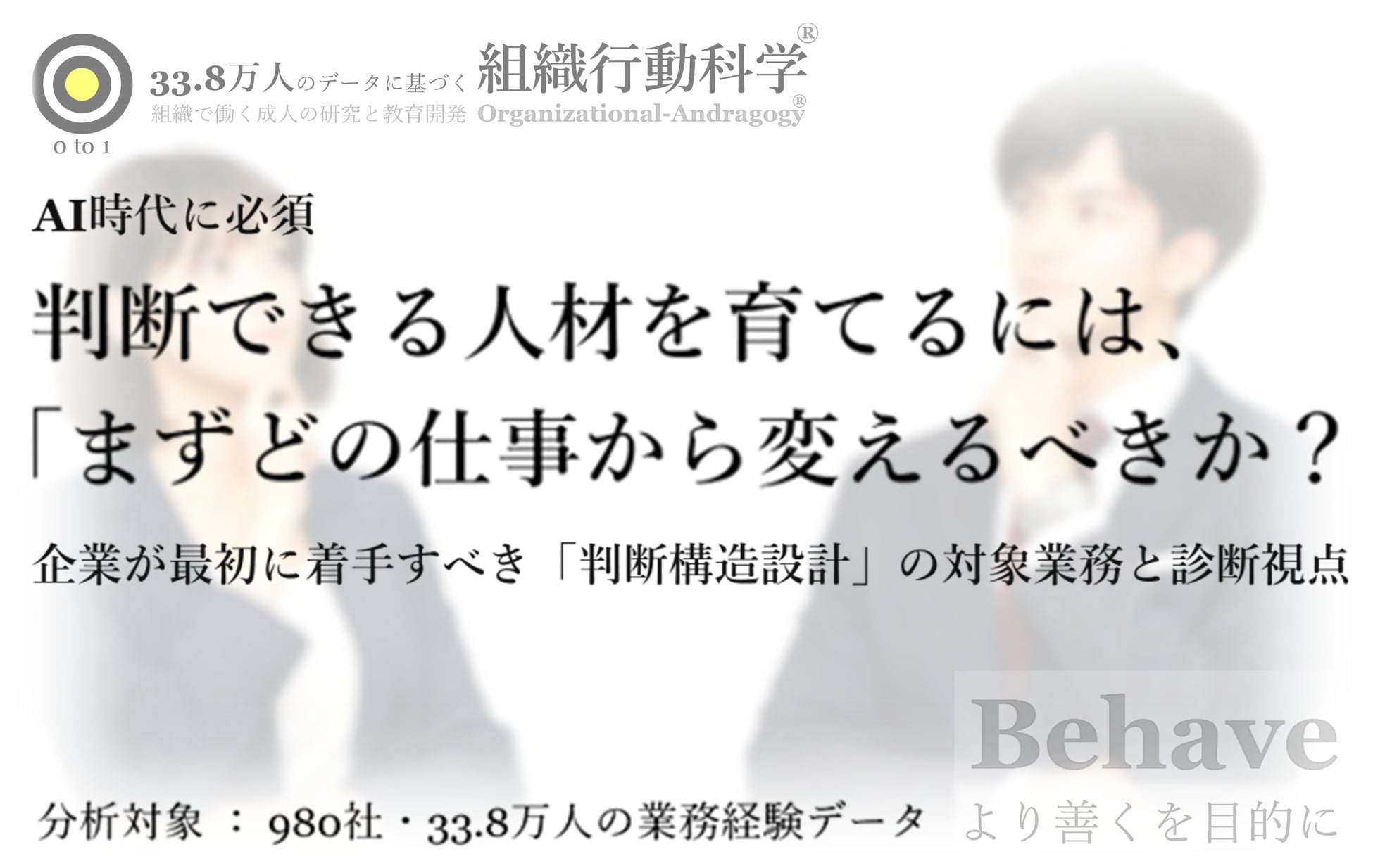 AI時代に必須:判断できる人材を育てるには、「まずどの仕事から変えるべきか?」企業が最初に着手すべき「判断構造設計」の対象業務と診断視点を公開(組織行動科学®)