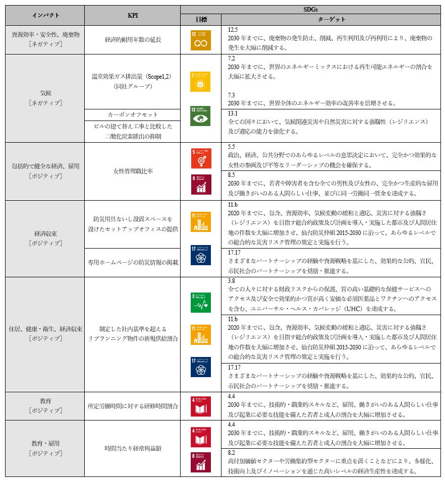【ポジティブ・インパクトファイナンスに掲げるKPIおよび目標】