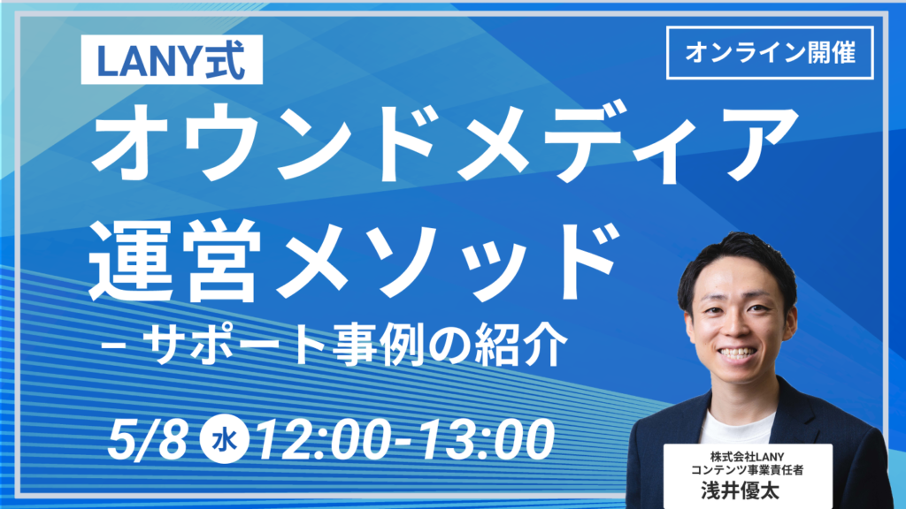 【無料ウェビナー】【LANY式】オウンドメディア運営メソッド – サポート事例の紹介を解説するウェビナーを5/8(水)に開催
