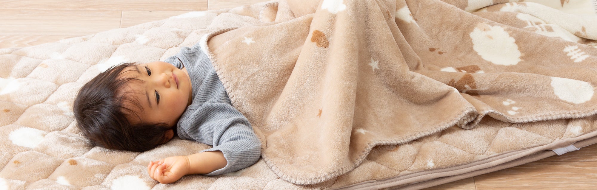 コンパクトサイズなので、おやすみのときはもちろん、外出時の持ち運びにも便利なベビーブランケット。吸湿発熱素材を使用したNウォームスーパーは、定番のNウォームよりもっとあたたかで、保湿機能もついて肌ざわりなめらか。同柄のあったか敷パッドや敷ふとんもご用意しています。お得なキャンペーン期間中に、是非セットでお試しください。