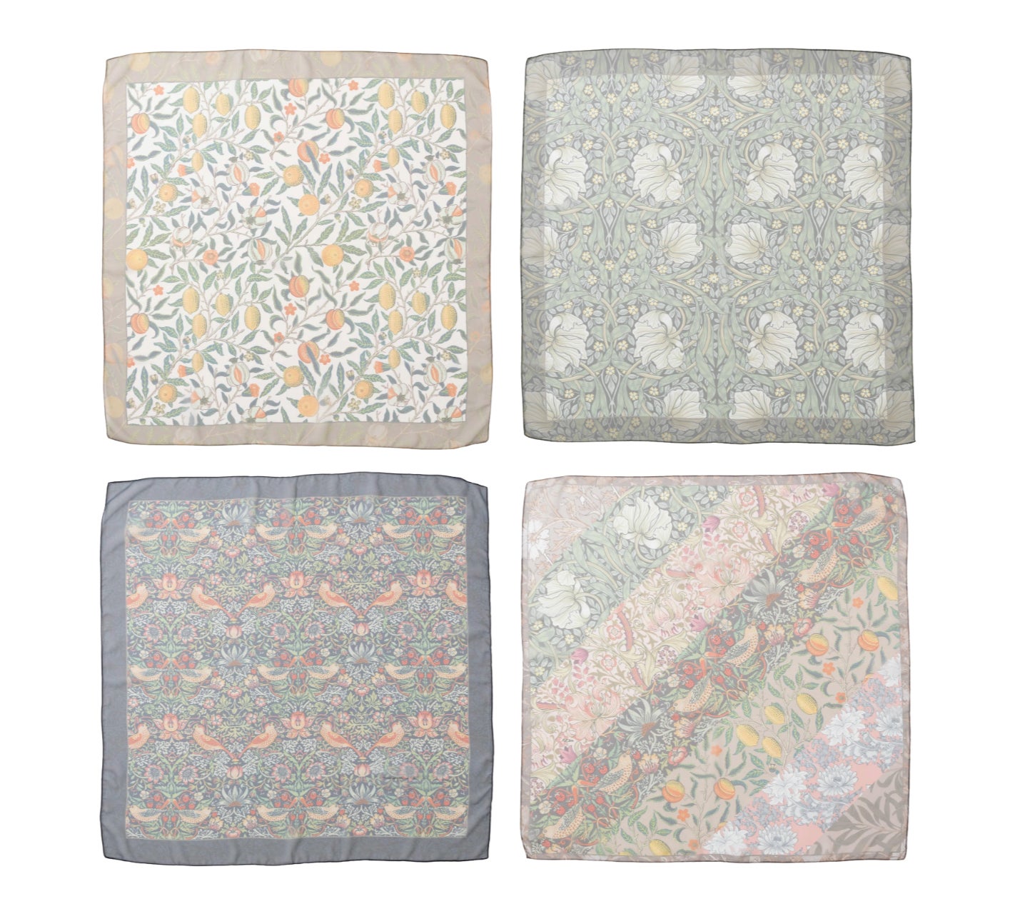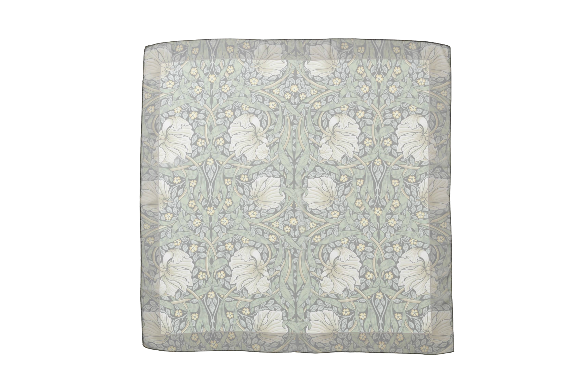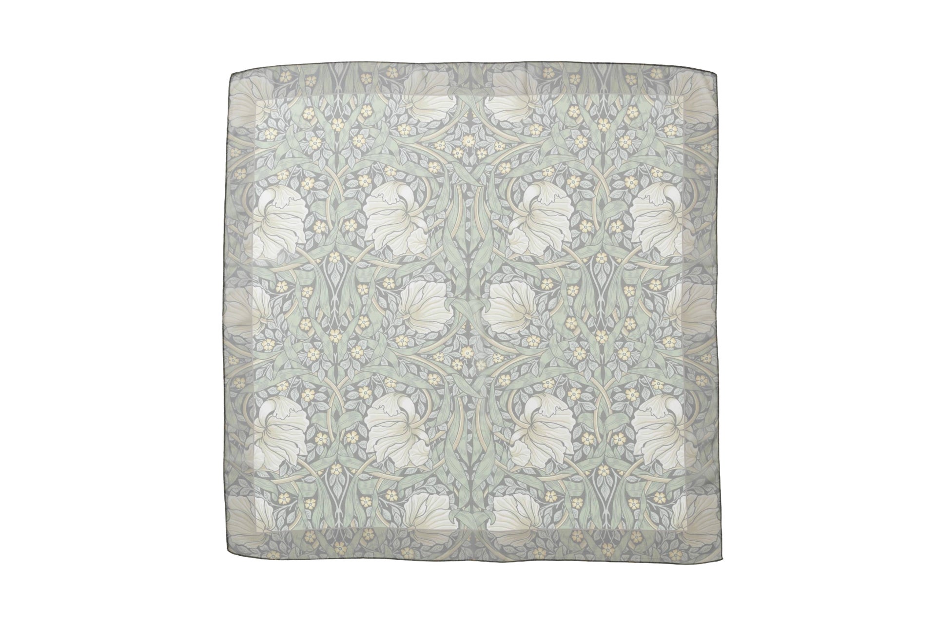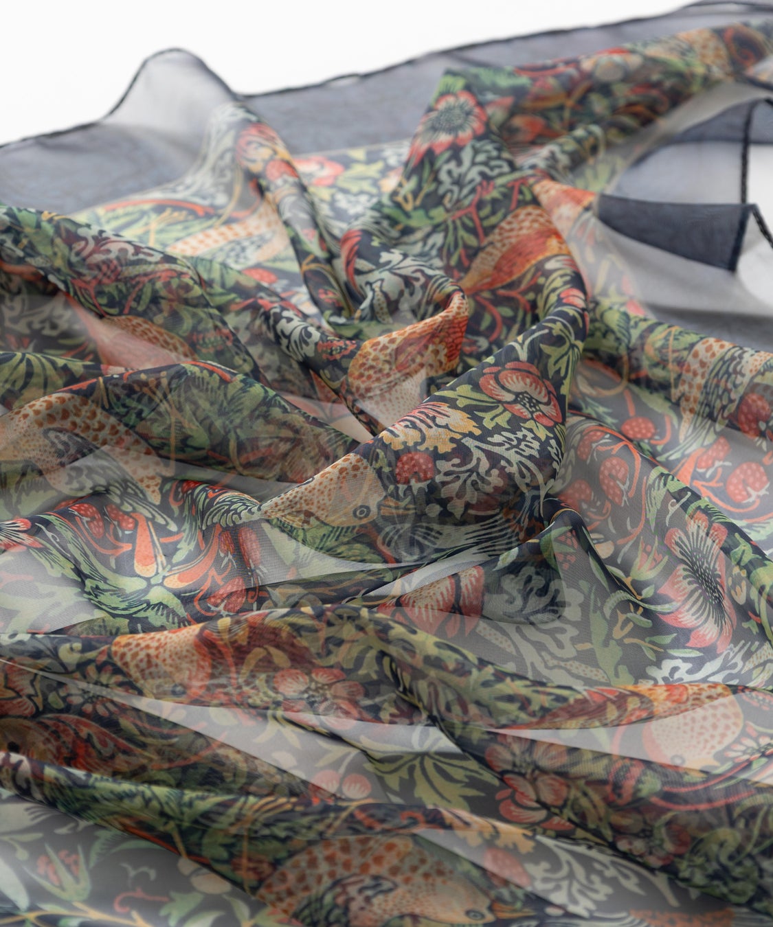 ウィリアムモリス柄を使用した 繊細で美しい草花模様をあしらったシフォンスカーフ。