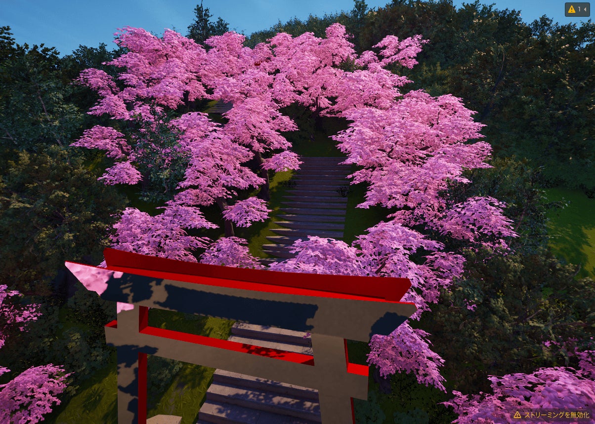 フォートナイト内のクリエイティブマップ「ATAMI TREASURE SURVIVAL」も、春らしいピンクの演出に切り替わります。