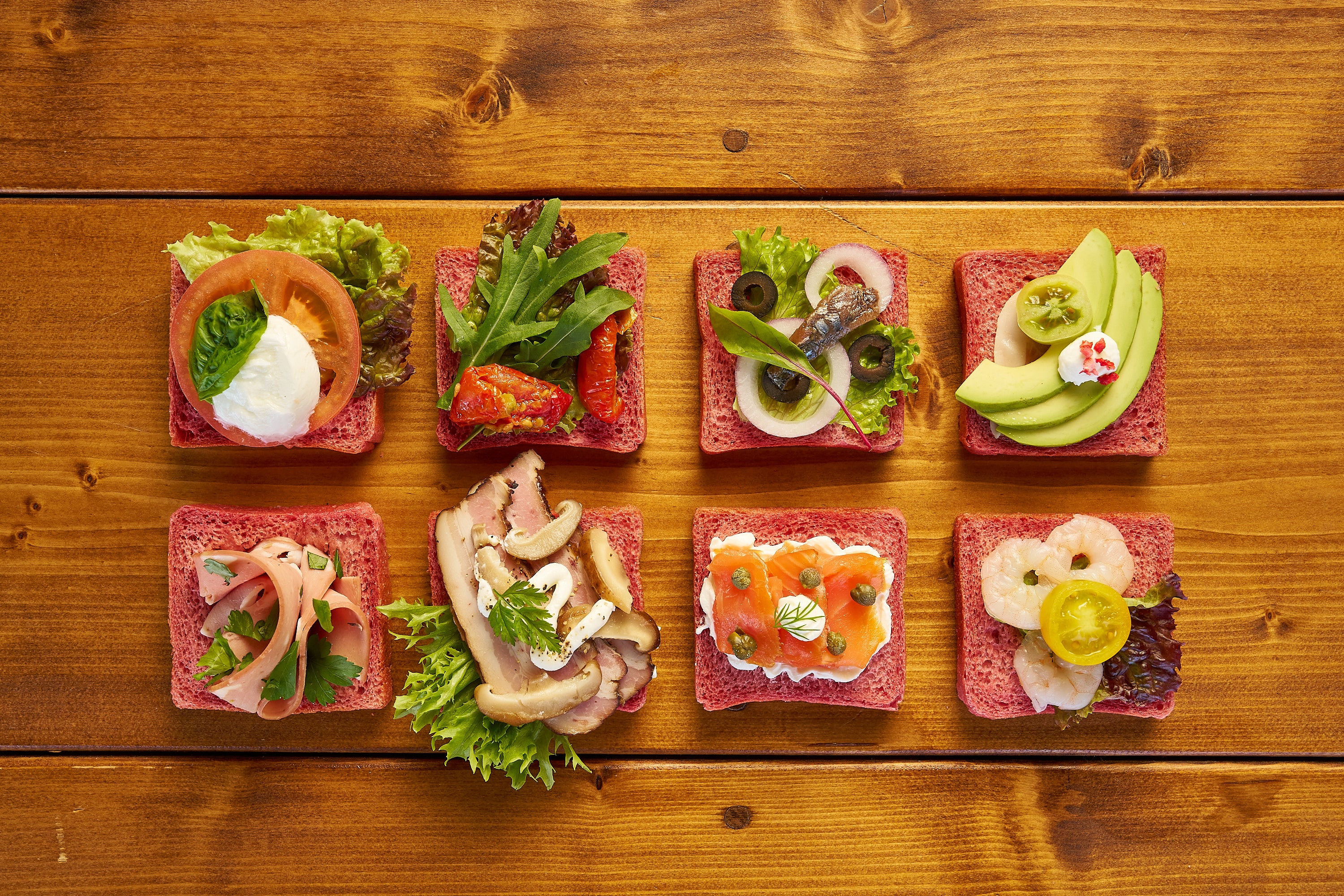 詳細:桜色のパンに彩り豊かな具材をのせた、春を味わう贅沢な一口サイズのサンド。具材は日替わりで多彩なバリエーションをご用意しております。