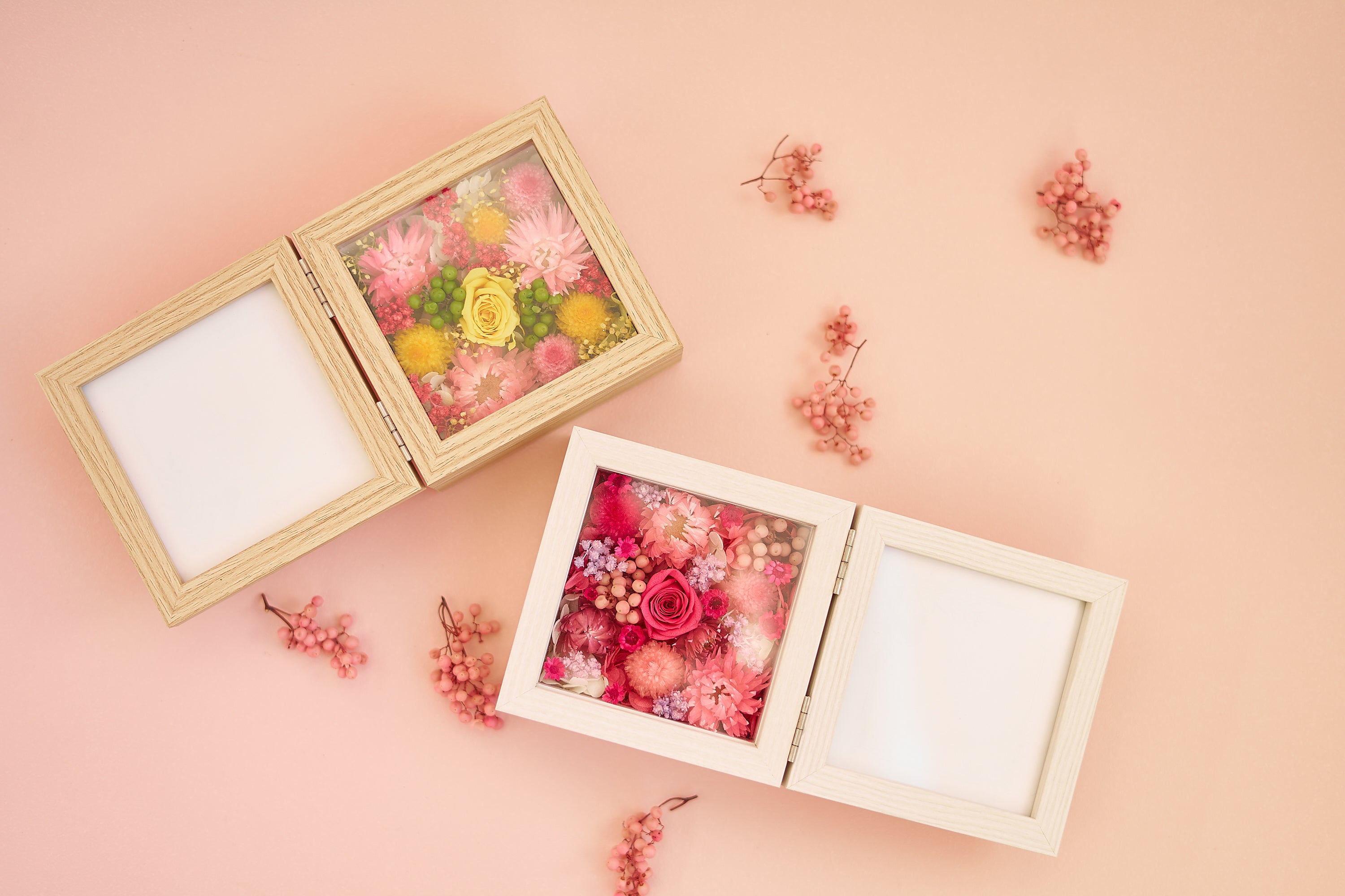 詳細:やさしい色合いのプリザーブドフラワーを選んで作る、「ガーデンメモリアルフォトフレーム」。お気に入りの写真を、春のお庭のような優しい雰囲気で飾れるワークショップです。