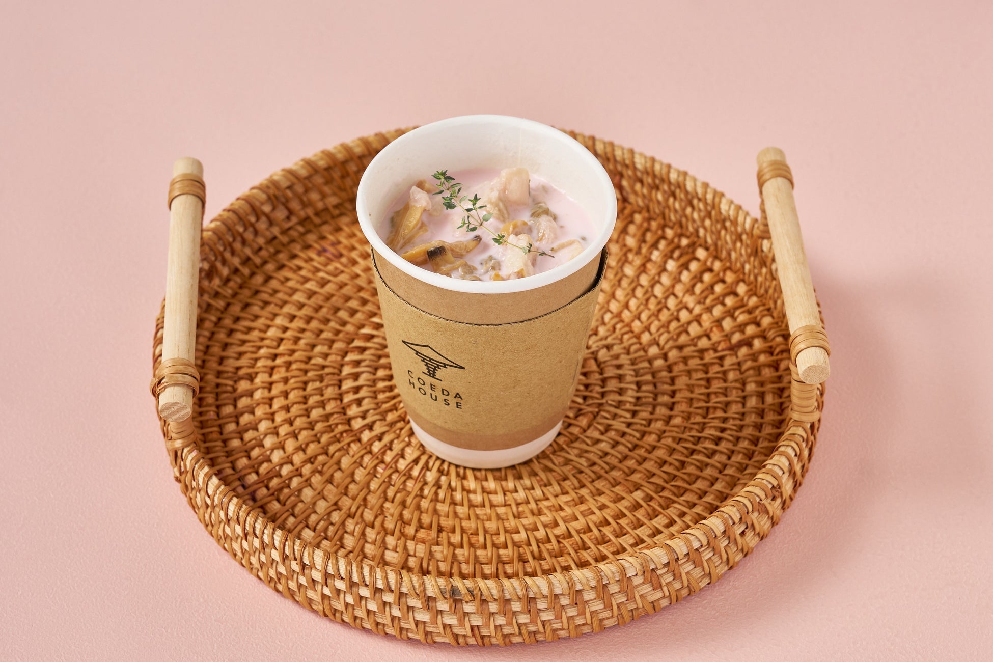 詳細:ほんのり桜色に仕上げた濃厚なチャウダーは、あさりと野菜の旨みをたっぷり詰め込んだ一杯。やさしい味わいで、園内散策のお供にもぴったりです。