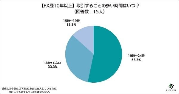 ・決まってない(13人):仕事が休みで家にいるときに、チャートを見ながらすることが多いので、いろいろな時間帯で取引する。