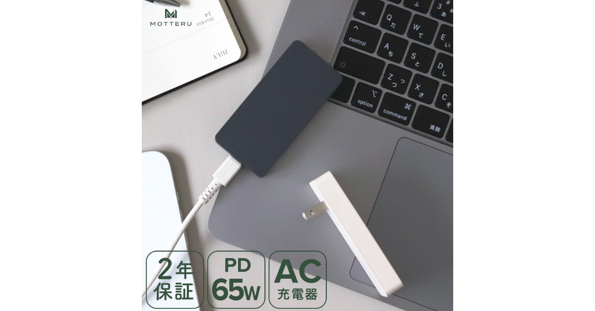 MOTTERU PD65W対応でノートPCも充電可能!超薄型AC充電器が登場