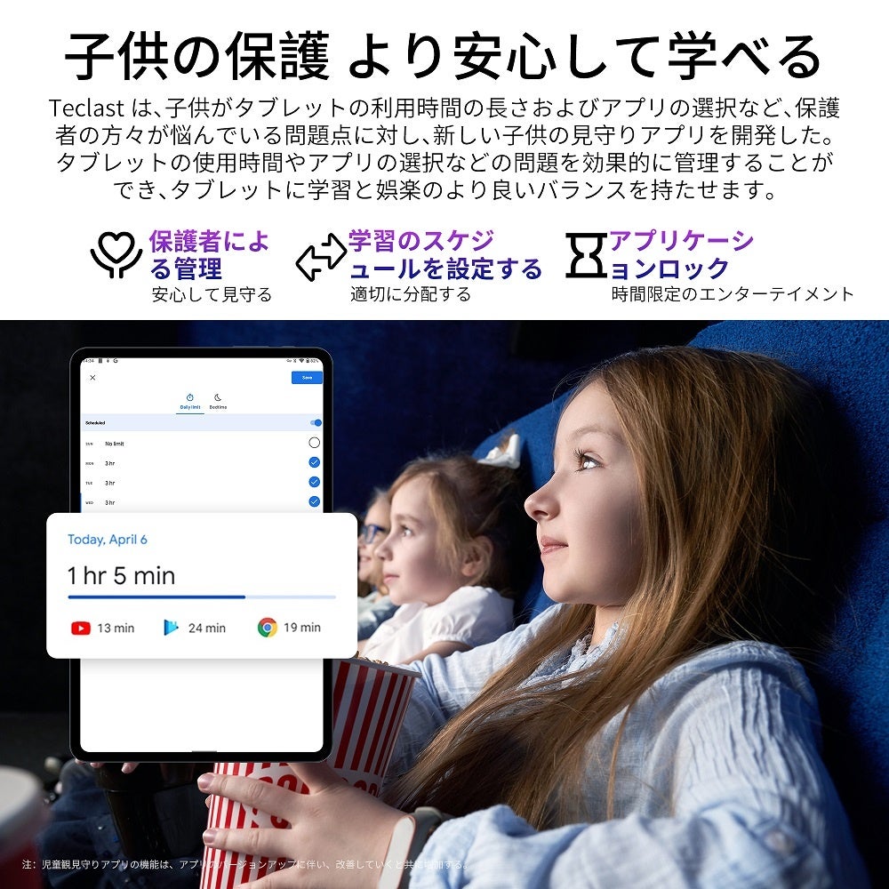 Teclastは、子供がタブレットの利用時間の長さおよびアプリの選択など、保護者の方々が悩んでいる問題点に対し、新しい子供の見守りアプリを開発しました。より効果的に管理することができ、タブレットに学習と娯楽のより良いバランスを持たせます。