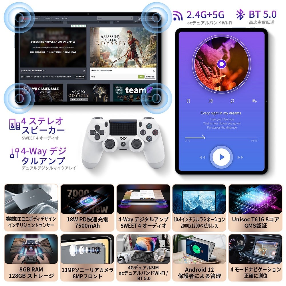 7000mAhのバッテリーが搭載されています。 18W USB-PD急速充電をサポートしているため、大体4時間で満充電になる可能です。ゲームが必要なときにタブレットをすぐにフルに戻すことができます。より長い待機時間を提供できます。