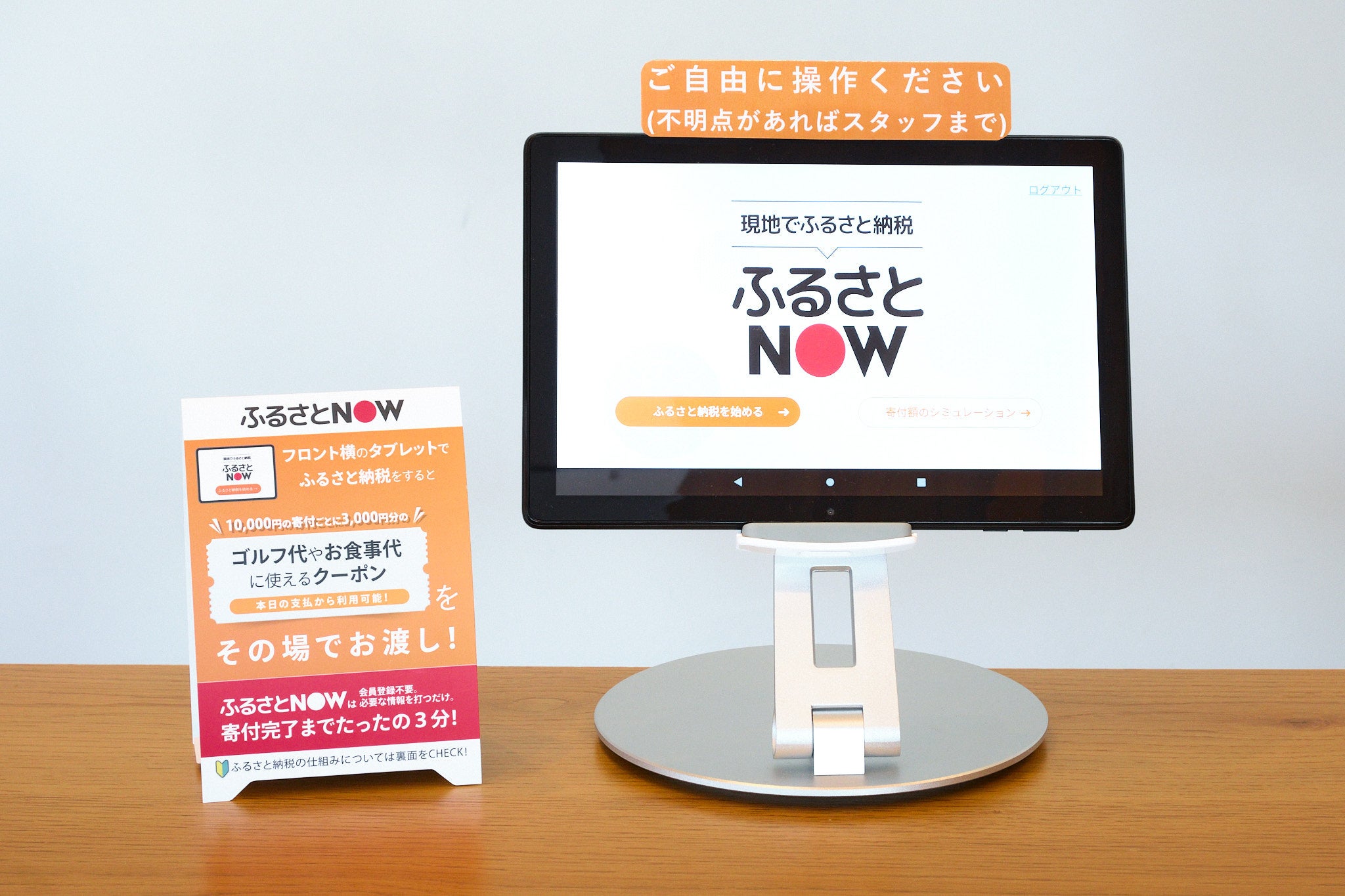 『ふるさとNow』は訪れた施設に設置されているタブレット端末でふるさと納税をすると、その場ですぐに返礼品を受け取れる仕組みです。会員登録不要で寄付に必要な情報をタブレット端末に入力するだけなので、訪問中の待ち時間の間等でもふるさと納税をすることができます。そのため、ふるさと納税が初めての方にもお気軽にお使いいただけます。