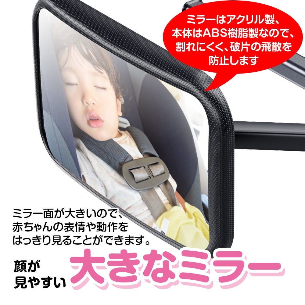 ミラー面が大きいので赤ちゃんの表情や動作をはっきり見ることができます。