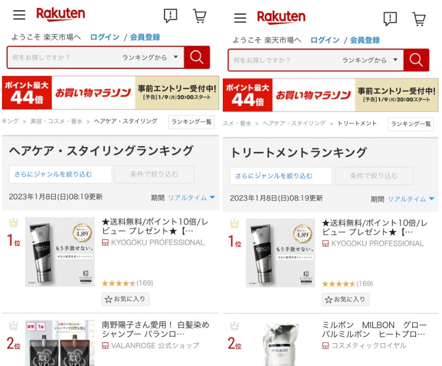 「美容・コスメ・香水ランキング」&「ヘアケア・スタイリングランキング」&「トリートメントランキング」で1位を獲得いたしました。