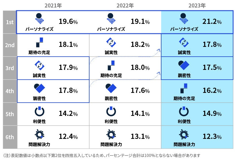 Six Pillarsのうち「パーソナライズ」の重要度は21.2%と、3年連続最上位に。