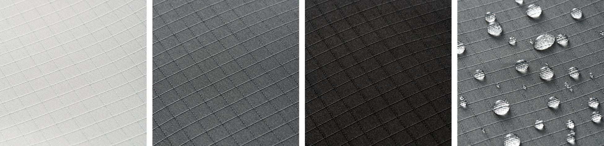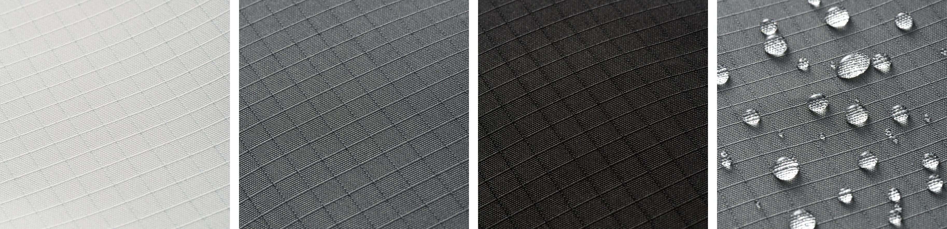 生地表面には撥水加工を施し、軽量で引き裂きに強いポリエステル糸を格子状に織り込んだリップストップ生地を採用。ライトグレー、ダークグレー、ブラ ックの3色展開。