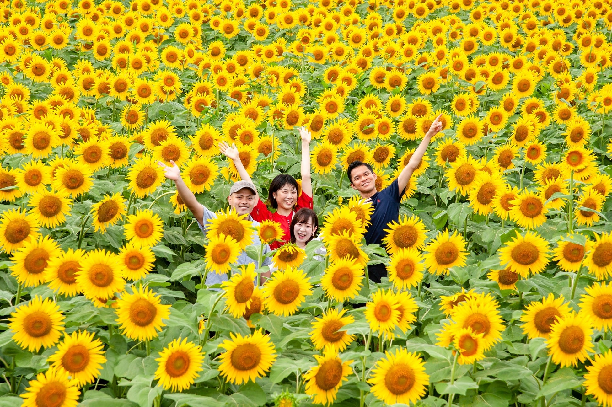 4ヘクタールの広大な畑の中に約50万本のひまわりが咲き誇ります。