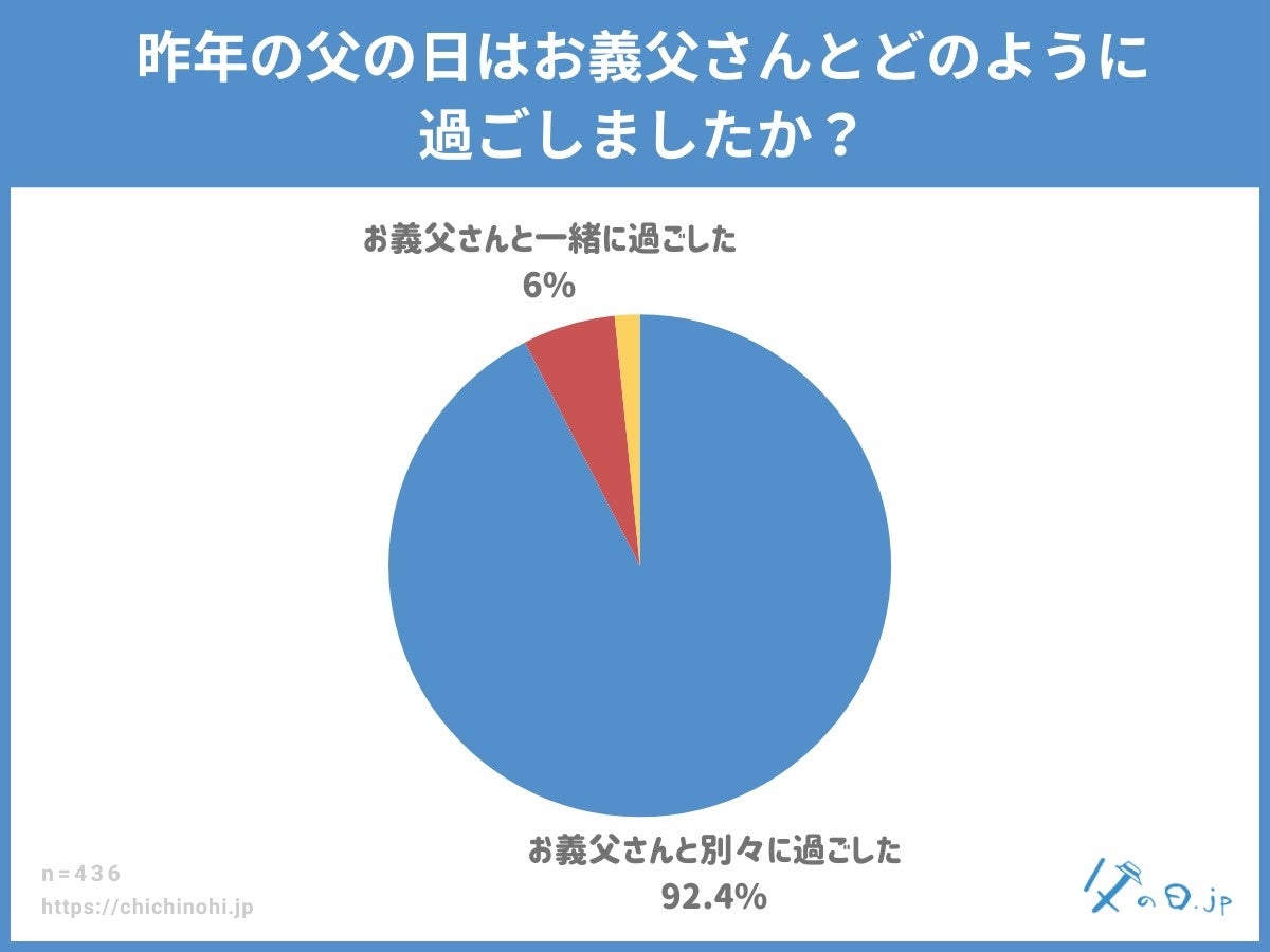 ・実父と一緒に過ごす人は25.1%、義父とはわずか6%。9割以上が「離れて過ごす父の日」。