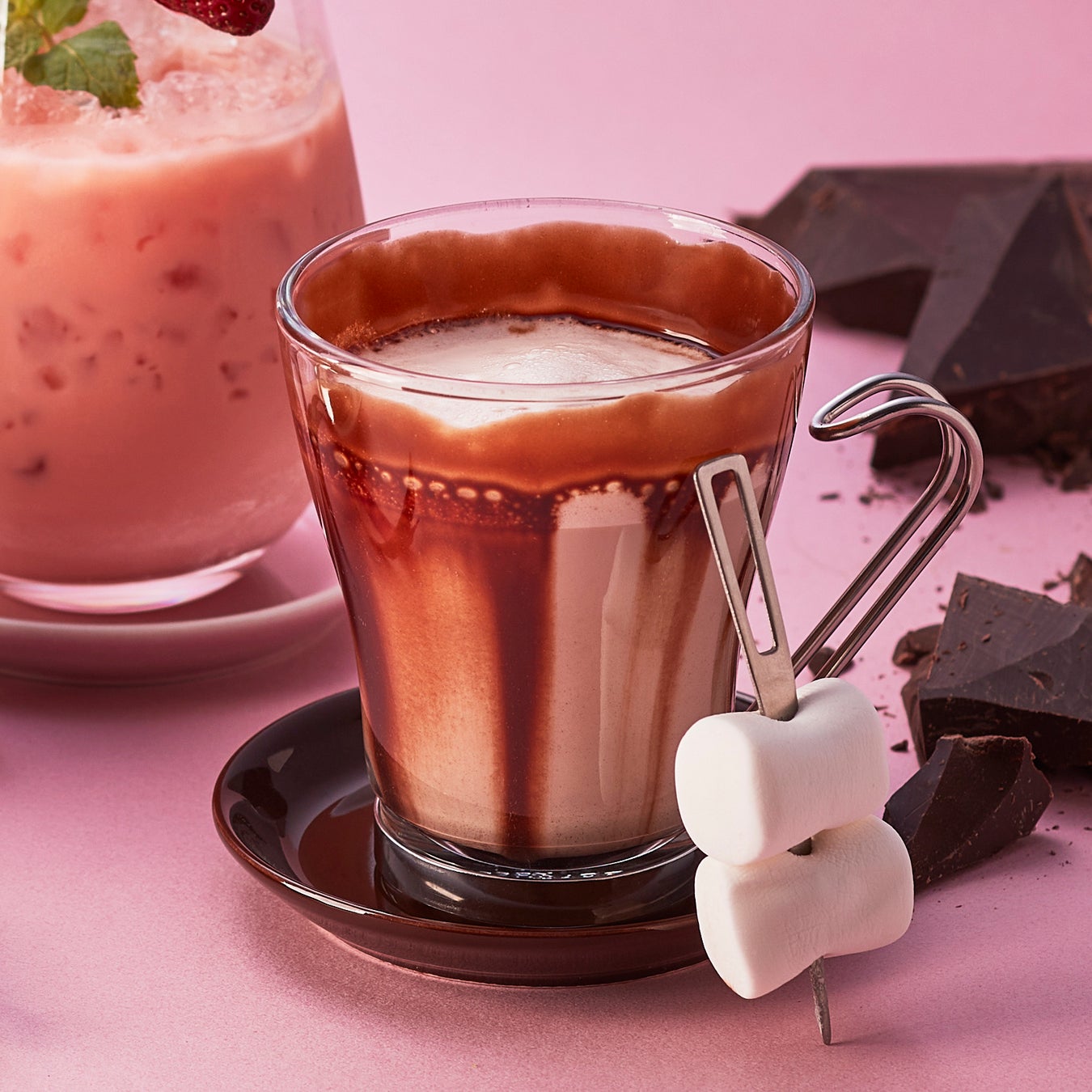 チョコレートリキュールにブランデーをプラスし、深みのある大人のホットチョコレートに仕上げました。添えたマシュマロとのコラボレーションも楽しい、とびきり寒い夜におすすめのカクテルです。