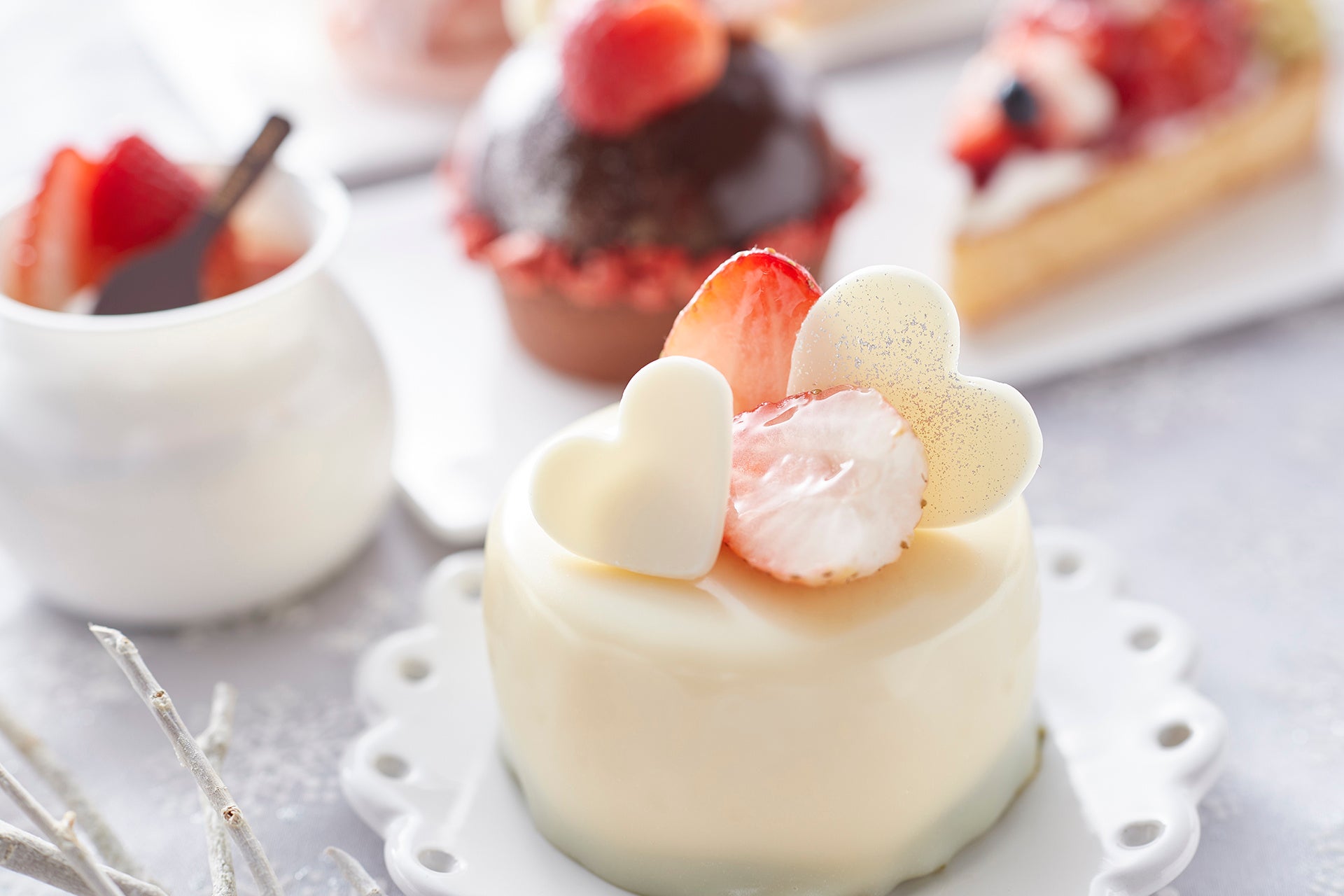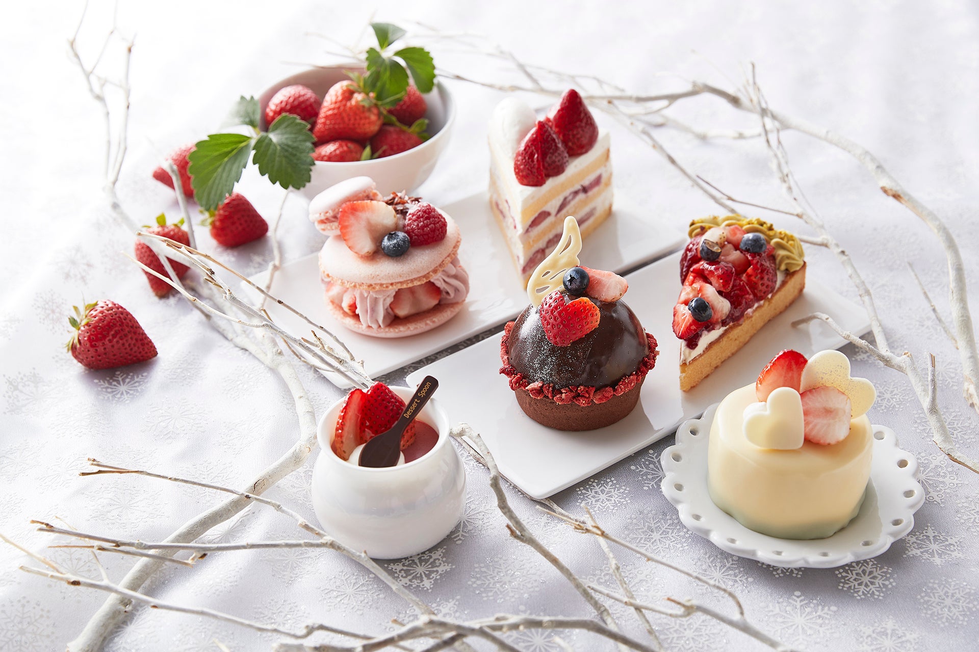 「風花が舞う景色を眺めながら、大好きな人と一緒に」をテーマに、みずみずしい真っ赤な苺を主役にした、冬の季節に合うなめらかなでしっとりとした味わいの、バレンタインにもぴったりな可憐な装いのスイーツ6種を販売します。