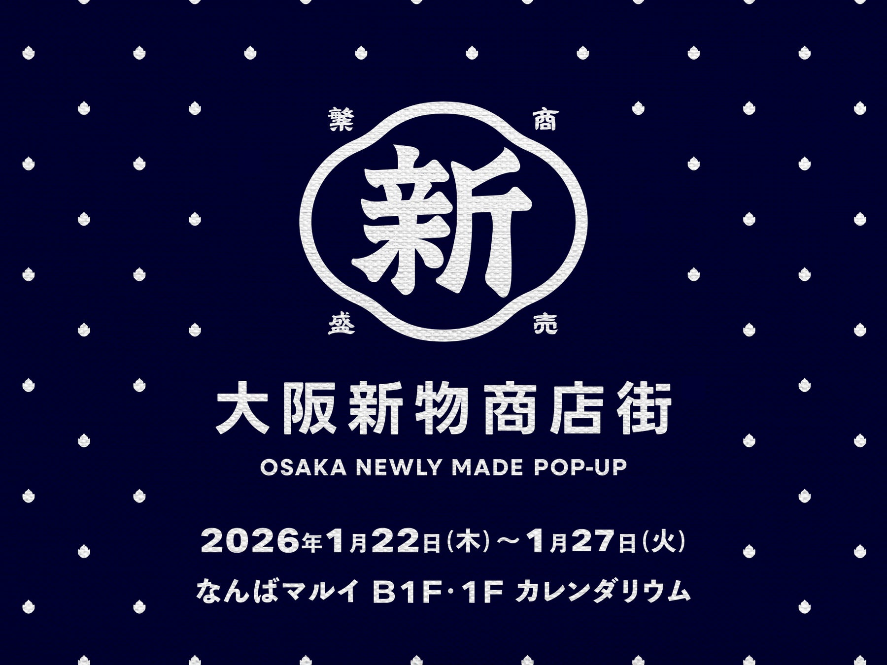 公益財団法人大阪産業局は、2026年1月22日(木)から1月27日(火)までの6日間、なんばマルイ(大阪市中央区)にて、大阪生まれの新しい商品「新物(しんもの)」を集めたポップアップイベント「大阪新物商店街」を開催します。「初春」「初売り」など、その時期に初めて市場に出る旬の「初物(はつもの)」でにぎわう1月。本イベントではあえて「初物」ではなく、大阪の中小企業が情熱を持って開発したこれまでになかった新しい商品「新物(しんもの)」を一堂にお披露目します。