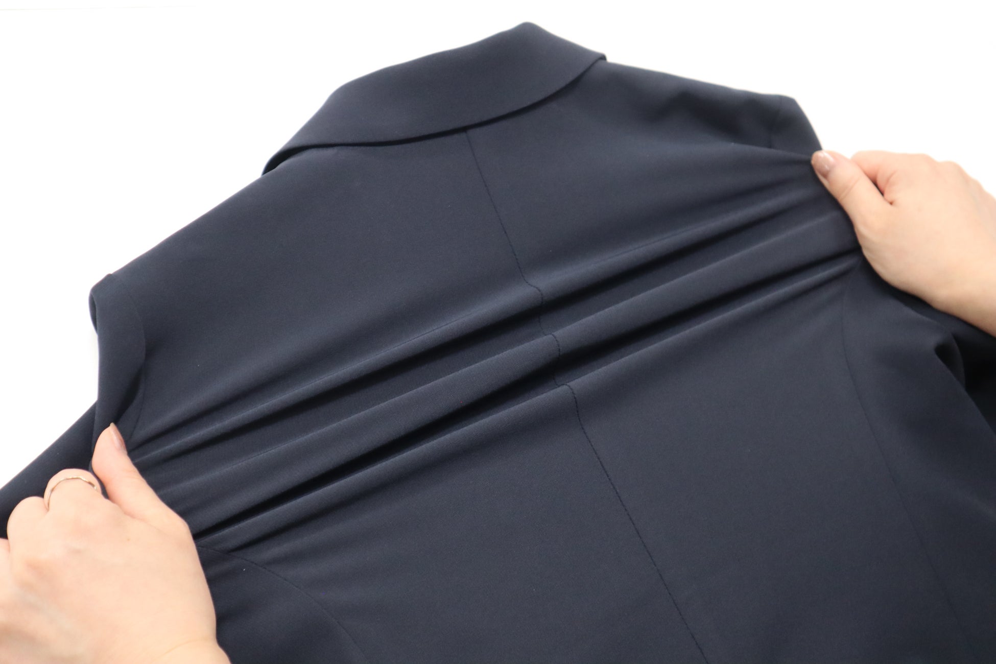 昨今のレディス市場では、女性管理職比率の向上や多様化するウエアリングの影響もあり、カジュアルブランドでもスーツ見えセットアップを展開するなど、機能的な低価格スーツの需要が高まっています。上下1万円以下で揃うレディススタイルの「ゼロプレッシャースーツ」には、当社が長年のスーツ販売で培った縫製技術のノウハウを詰め込みました。また、縦・横の高い伸縮性や防シワ性、自宅の洗濯機で丸洗いできるイージーケア性、突然の雨でも安心な撥水性※も備えた高機能スーツです。前回発売のブラック・ベージュ・チャコールグレーについては、発売直後から全色購入やリピート買いしていただくなど、新色追加を待つお声があがるほど、大変ご好評いただいています。発売から3カ月で完売間近になるなど想定を上回る売れ行きで推移しました。そこで今回新たに、汎用性の高いネイビーと季節性を感じるライトグレーを追加生産しました。