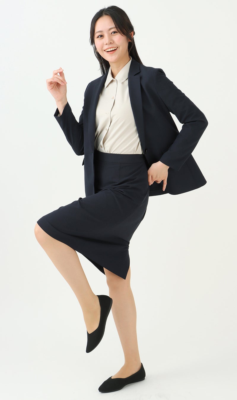 2024年3月にデビューした、上下で税込1万円を下回る価格の「ゼロプレッシャースーツ」レディススタイルは、発売直後からリピート買いしていただくなど、新色追加を待つお声があがるほど、大変ご好評いただいています。今回新たに登場したネイビーとライトグレーもビジネスシーンで使いやすいカラーとなっていますので、外回りや汗による汚れが気になる方、自転車通勤の方、仕事帰りにお子様のお迎えがあるワーキングママなど多くの方に手に取っていただきたいです。