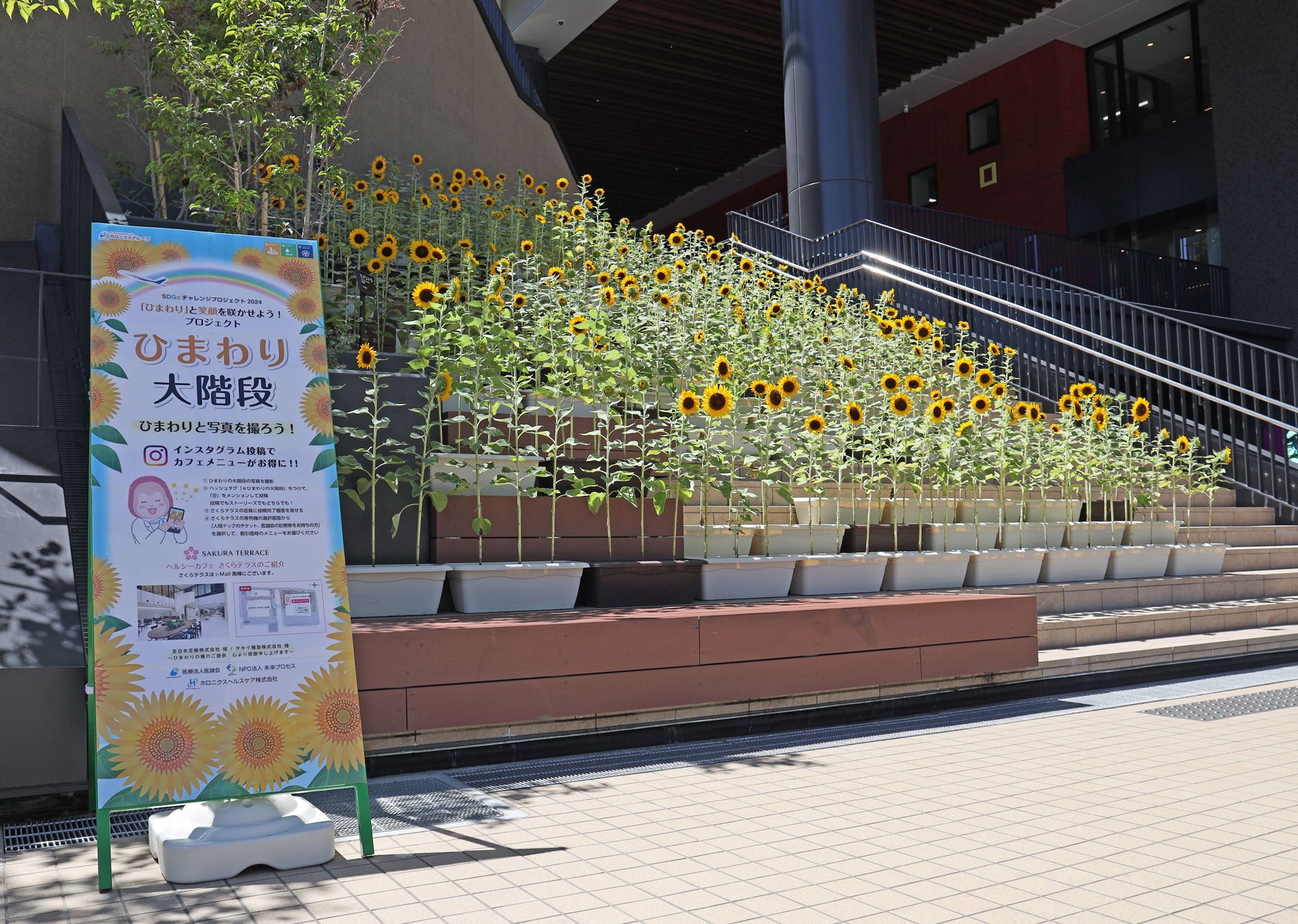 ひまわりの輝く黄色に込められた「大切な人の幸せと無事を願う」気持ちが多くの人に届いたことでしょう。尚、ひまわりの大階段は、花の終わりまで継続して設置されています。